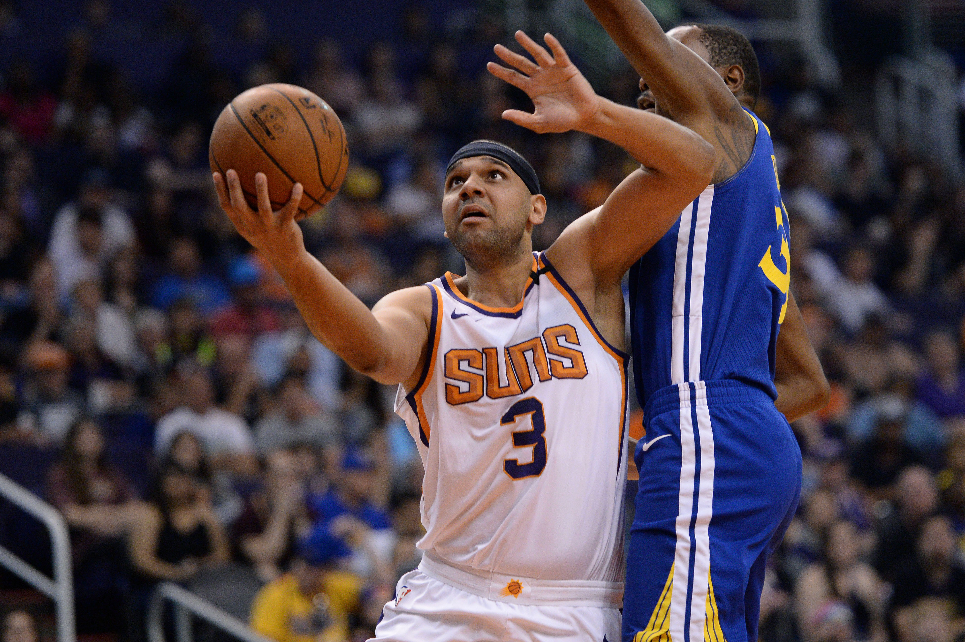 Phoenix Suns forward Jared Dudley goes to the basket ahead of Golden State Warriors forward Kevin Durant during the second quarter at Talking Stick Resort Arena. / Orlando Ramirez/USA TODAY Sports