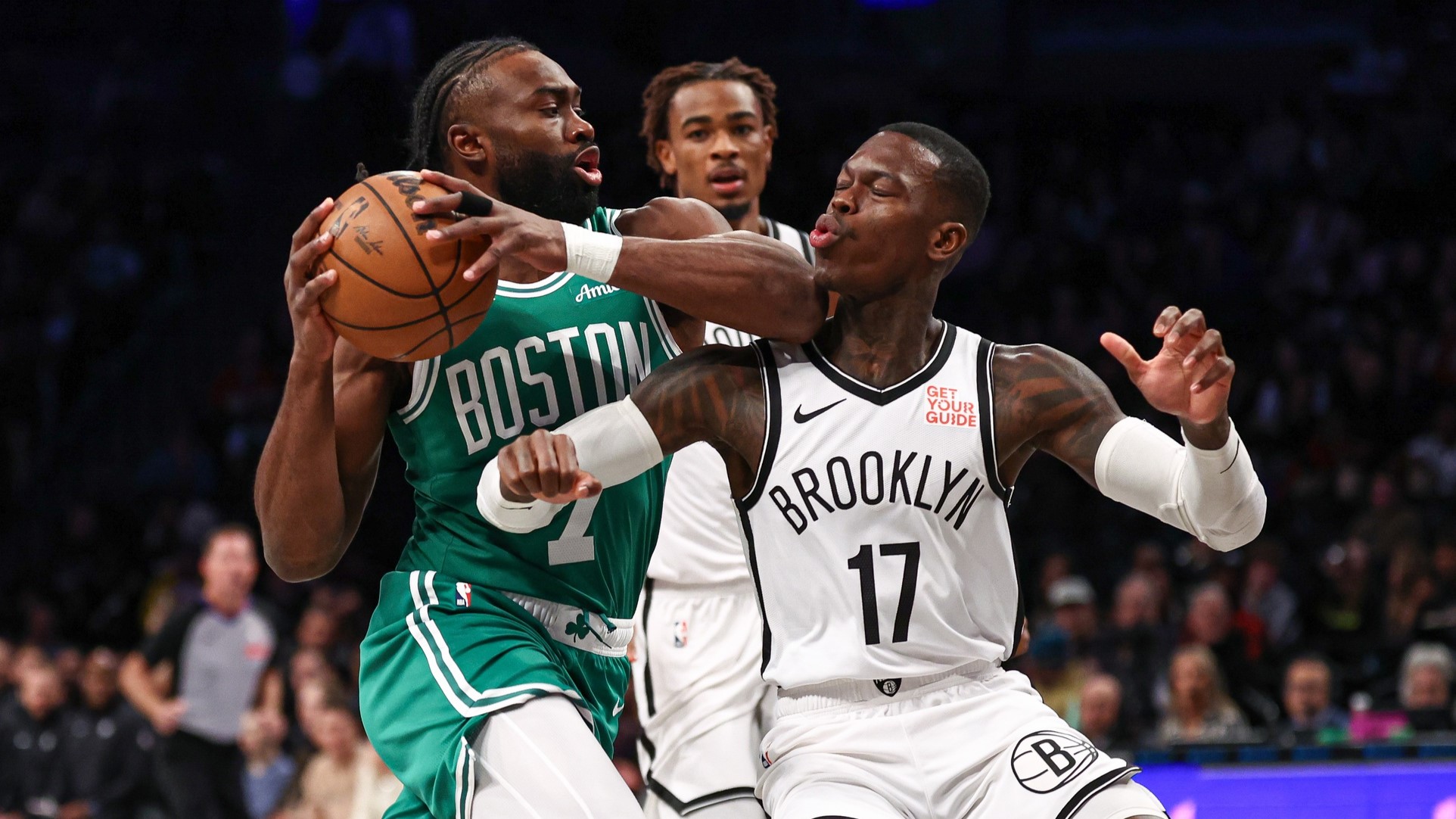 Nets can't hold down Jayson Tatum, Jaylen Brown in 139-114 loss to CelticsTatum, Brown combined to score 60 points11/14/2024, 3:07 AMAssociated PressNov 13, 2024; Brooklyn, New York, USA; Boston Celtics guard Jaylen Brown (7) drives to the basket as Brooklyn Nets guard Dennis Schroder (17) defends during the first quarter at Barclays Center. / Vincent Carchietta-Imagn Images