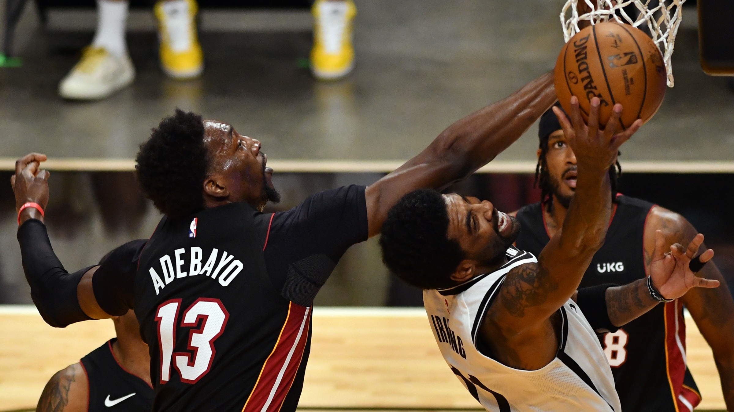Nets fall to Heat at the buzzer, but Kevin Durant's exit overshadows lossDurant played just eight minutes before leaving with a left thigh contusion4/18/2021, 10:55 PM