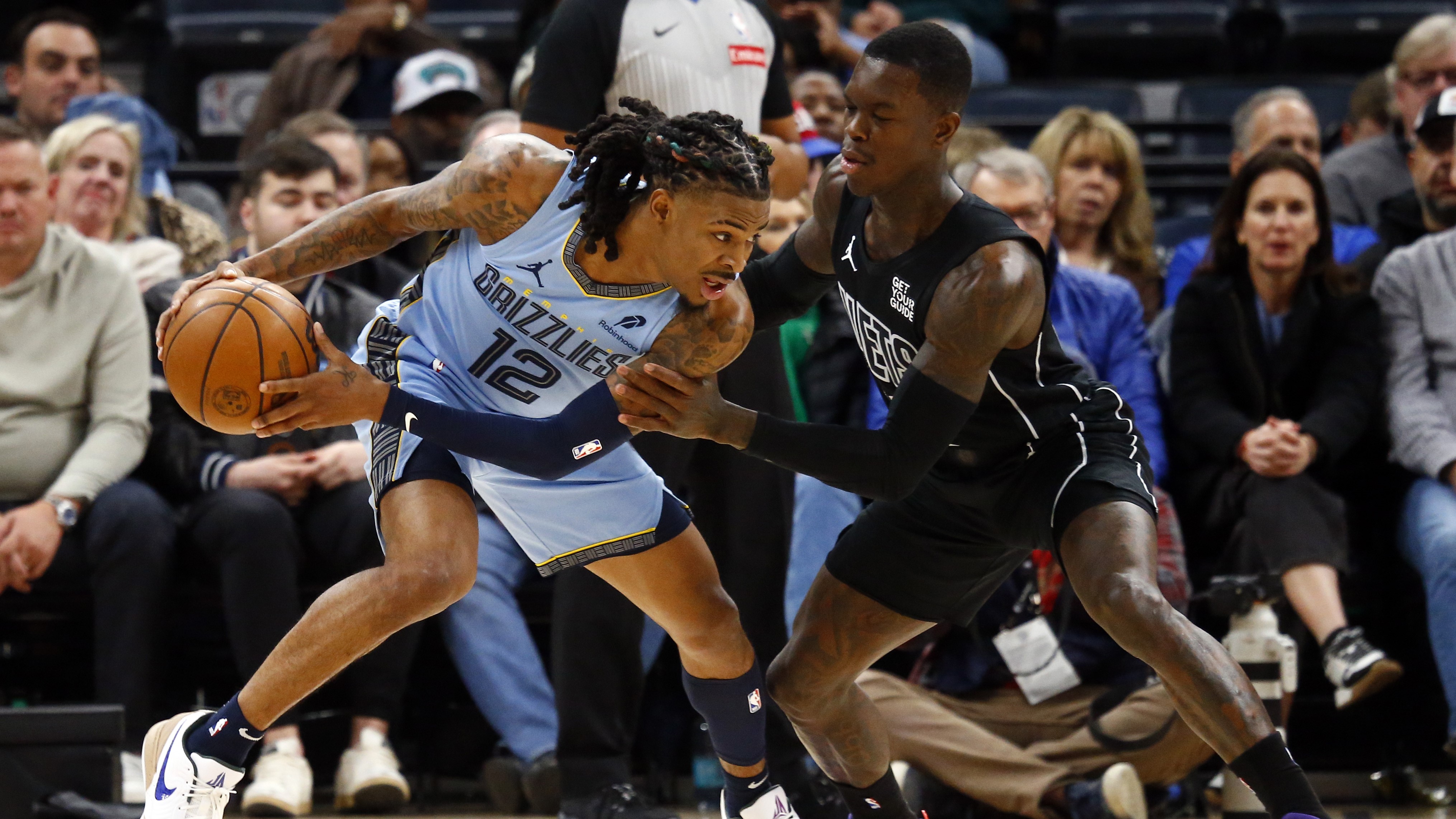 Nets overmatched in hostile 135-119 loss to GrizzliesBrooklyn made 20 three-pointers but committed 18 turnovers12/14/2024, 4:09 AMAssociated PressDec 13, 2024; Memphis, Tennessee, USA; Memphis Grizzlies guard Ja Morant (12) handles the ball as Brooklyn Nets guard Dennis Schroder (17) defends during the first quarter at FedExForum / Petre Thomas - Imagn Images