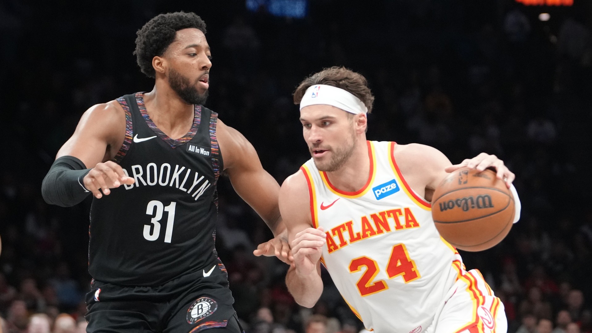 Nets drop back-to-back games after 141-107 loss to HawksNic Claxton led Brooklyn with 16 points4/4/2026, 3:22 AMAssociated PressApr 3, 2026; Brooklyn, New York, USA; Atlanta Hawks forward Corey Kispert (24) drives the ball against Brooklyn Nets forward Chaney Johnson (31) during the second half at Barclays Center. / Gregory Fisher-Imagn Images