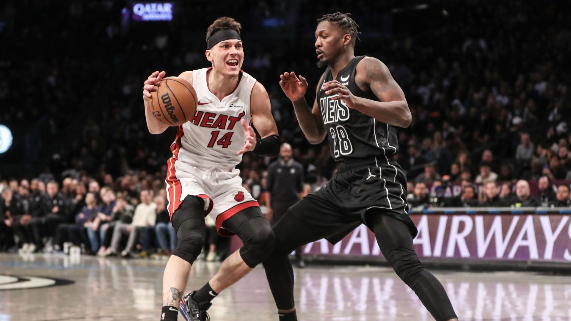 Nets miss team-record 43 three-pointers in OT loss to HeatBrooklyn has lost eight of its last nine games1/16/2024, 3:41 AMAssociated PressJan 15, 2024; Brooklyn, New York, USA; Miami Heat guard Tyler Herro (14) looks to drive past Brooklyn Nets forward Dorian Finney-Smith (28) in the second quarter at Barclays Center. / Wendell Cruz-USA TODAY Sports