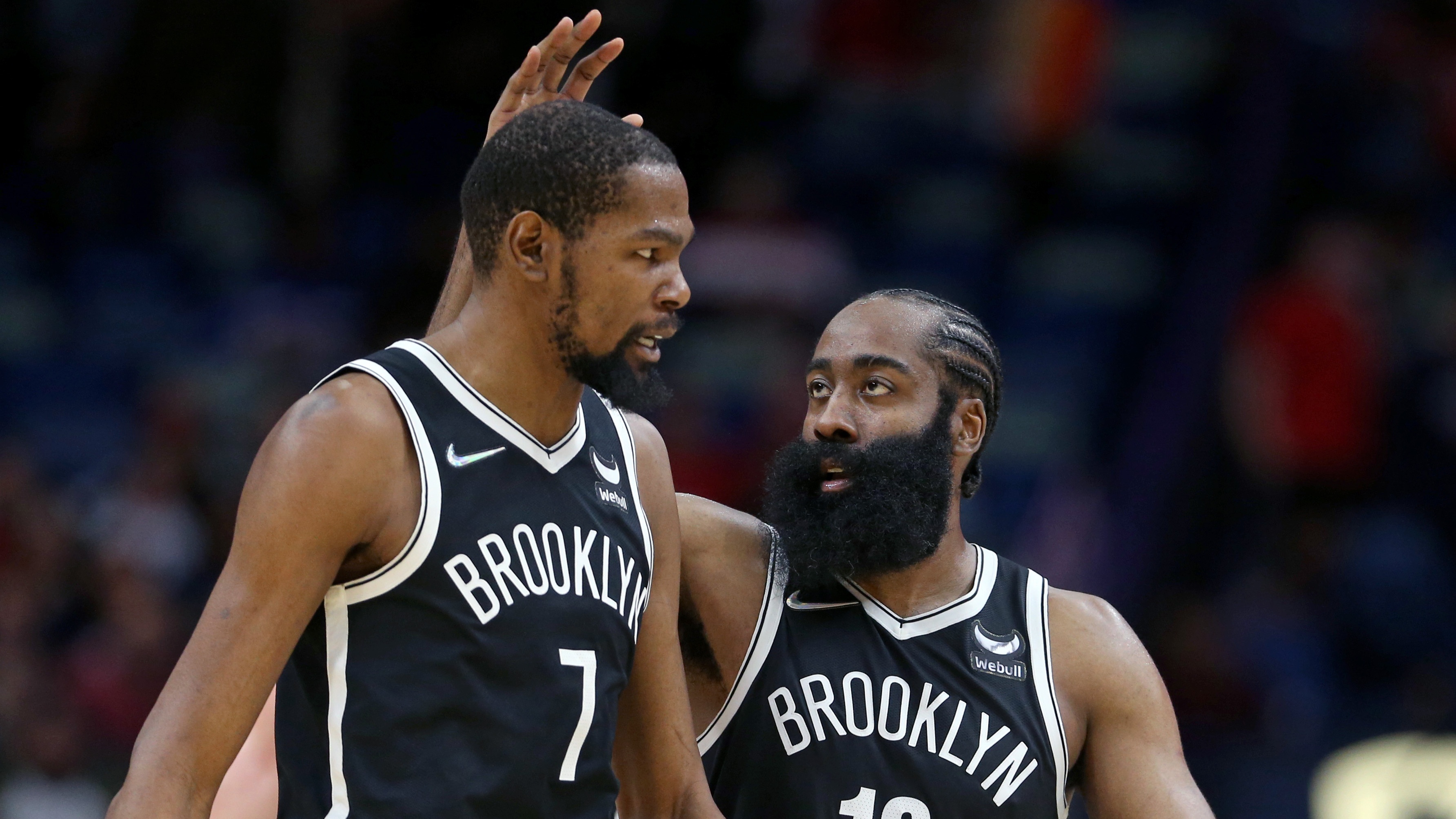 'Unselfish' James Harden, Kevin Durant take Nets to next levelBrooklyn's duo combined for 67 points in Friday's 120-112 win at Pelicans11/14/2021, 1:28 AMGarrett StepienFreelance Editorial ProducerNov 12, 2021; New Orleans, Louisiana, USA; Brooklyn Nets forward Kevin Durant (7) and guard James Harden (13) talk during the second half against the New Orleans Pelicans at the Smoothie King Center. Mandatory Credit: Chuck Cook-USA TODAY Sports / © Chuck Cook-USA TODAY Sports
