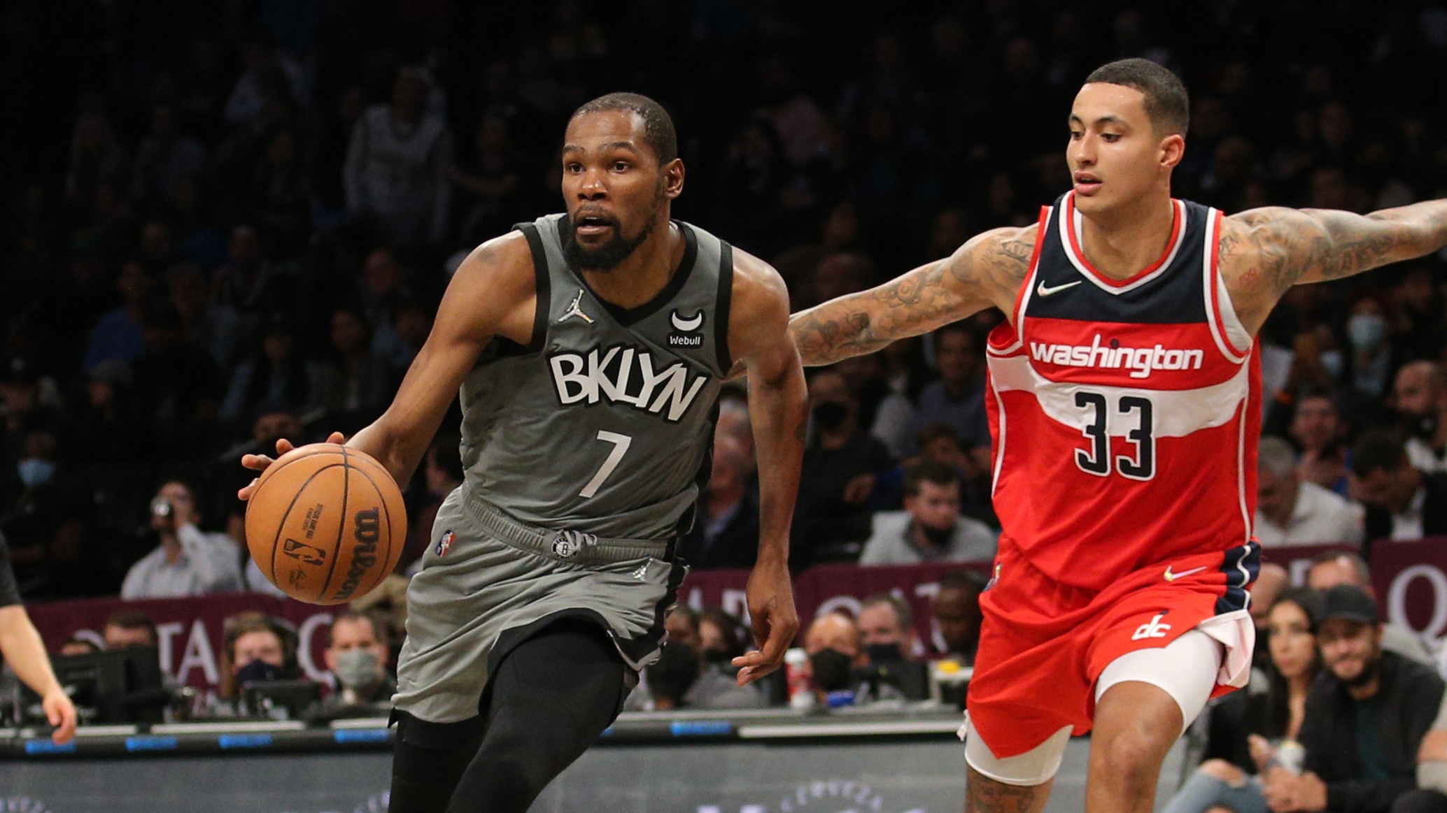 Kevin Durant drops 25 as Nets hand Wizards first loss, 104-90Patty Mills added 21 off the bench10/26/2021, 2:45 AMOct 25, 2021; Brooklyn, New York, USA; Brooklyn Nets forward Kevin Durant (7) controls the ball against Washington Wizards forward Kyle Kuzma (33) during the fourth quarter at Barclays Center. Mandatory Credit: Brad Penner-USA TODAY Sports / © Brad Penner-USA TODAY Sports