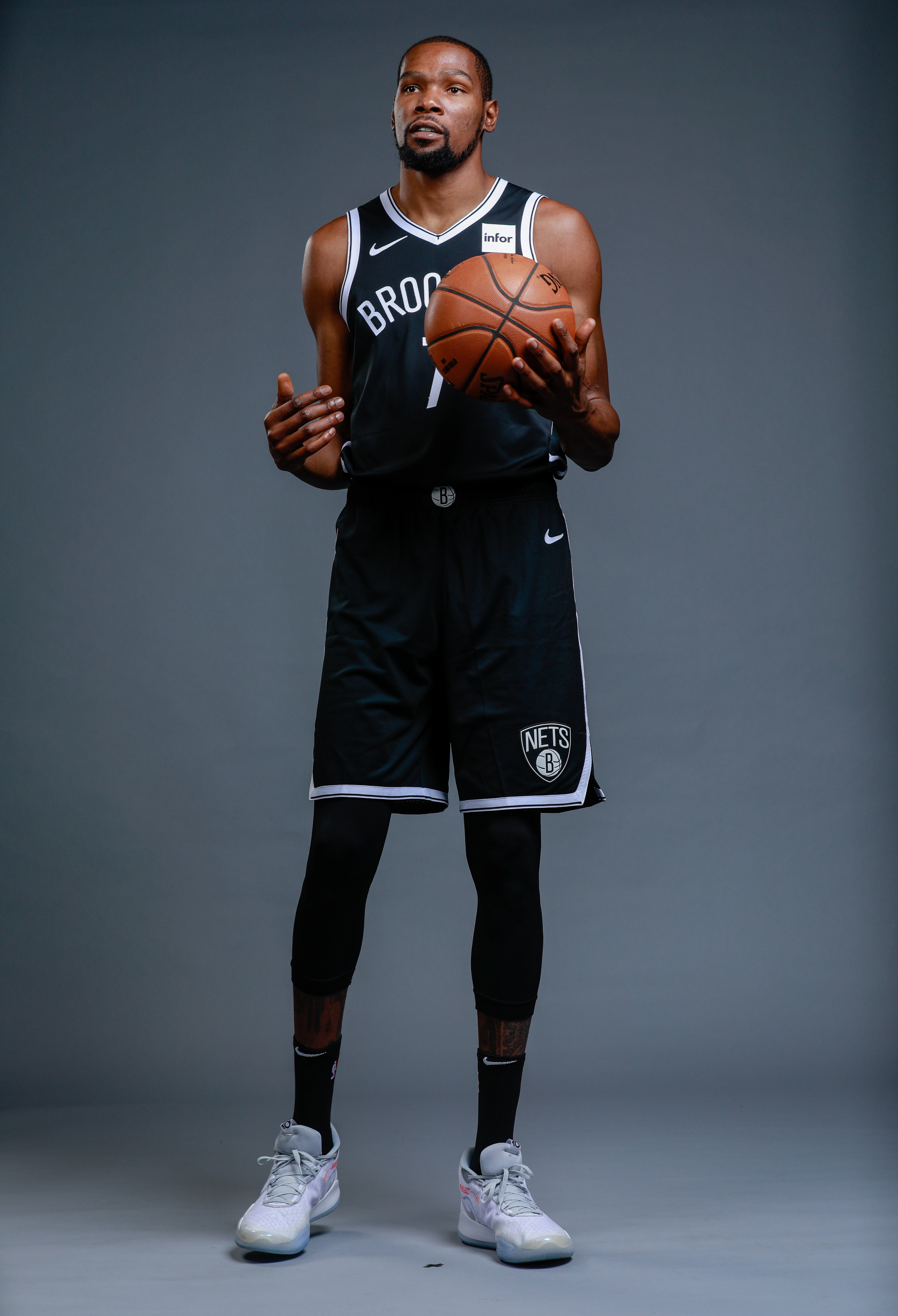 Sep 27, 2019; Brooklyn, NY, USA; Brooklyn Nets forward Kevin Durant (7) poses for a portrait during media day at HSS Training Center. Mandatory Credit: Nicole Sweet-USA TODAY Sports / Nicole Sweet