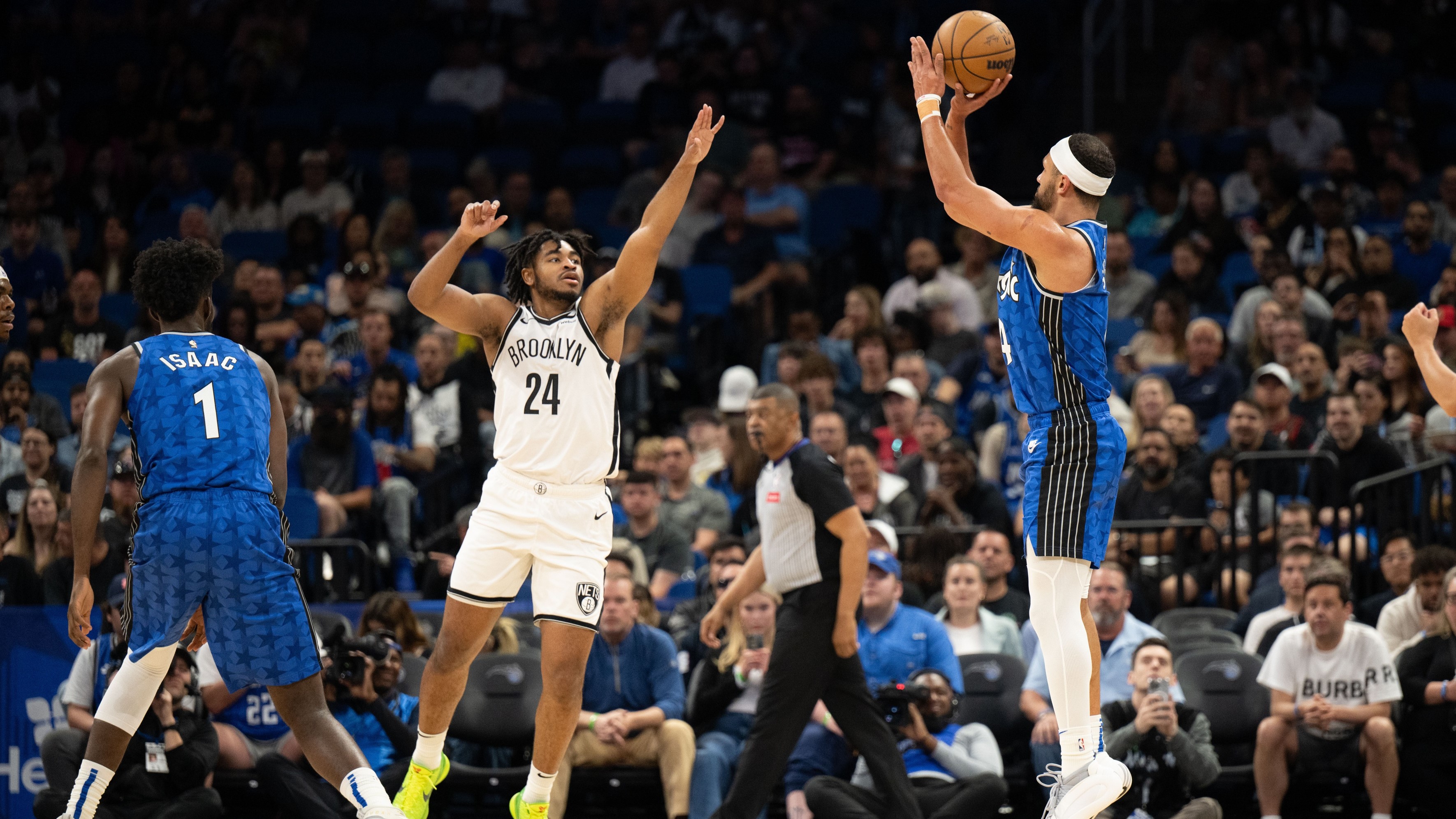 Nets' late surge not enough in 114-106 loss to MagicCam Thomas had team-high 21 points3/14/2024, 1:48 AMAssociated PressMar 13, 2024; Orlando, Florida, USA; Orlando Magic guard Jalen Suggs (4) shoot the ball over Brooklyn Nets guard Cam Thomas (24) in the second quarter at Kia Center. / Jeremy Reper-USA TODAY Sports