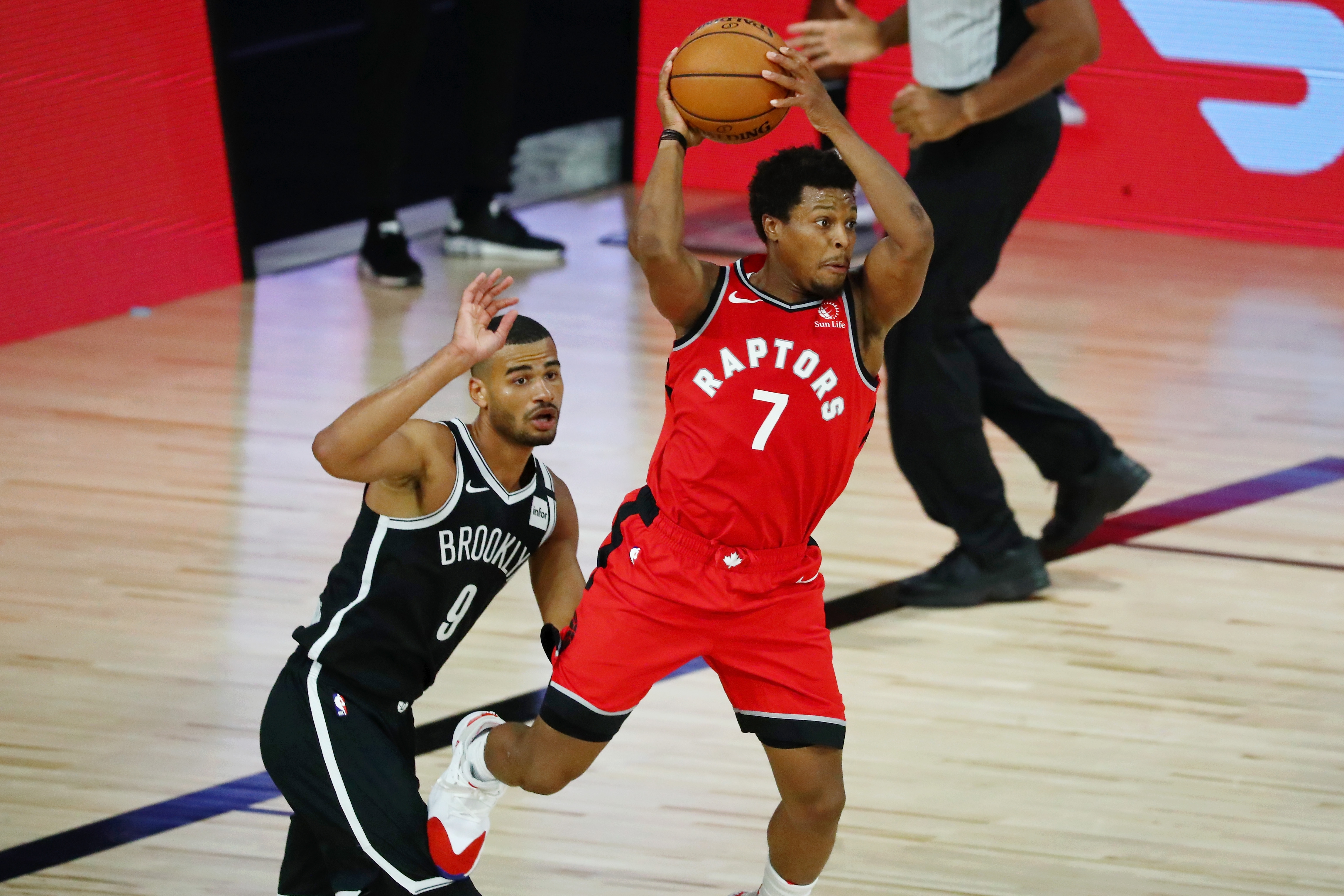 Nets now facing elimination following 117-92 loss to Raptors in Game 3Toronto just one win away from ending Nets' season8/21/2020, 8:13 PMAlex SmithEditorial ProducerToronto Raptors guard Kyle Lowry (7) looks to pass while defended by guard Timothe Luwawu-Cabarrot (9) during the second half in game three of the first round of the 2020 NBA Playoffs / Kim Klement - USA Today Sports