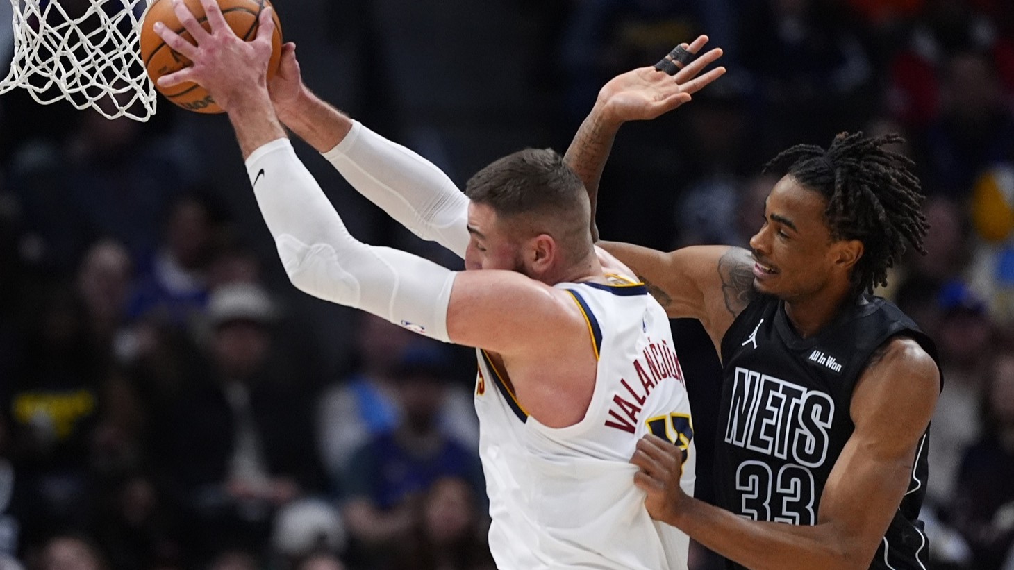 Nets fall short in 107-103 loss to Nuggets, extending losing streak to seven gamesMIchael Porter Jr. had a season-high 38 points1/30/2026, 4:45 AMAssociated PressJan 29, 2026; Denver, Colorado, USA; Denver Nuggets center Jonas Valanciunas (17) pulls in a rebound away from Brooklyn Nets center Nic Claxton (33) during the first quarter at Ball Arena. / Ron Chenoy-Imagn Images