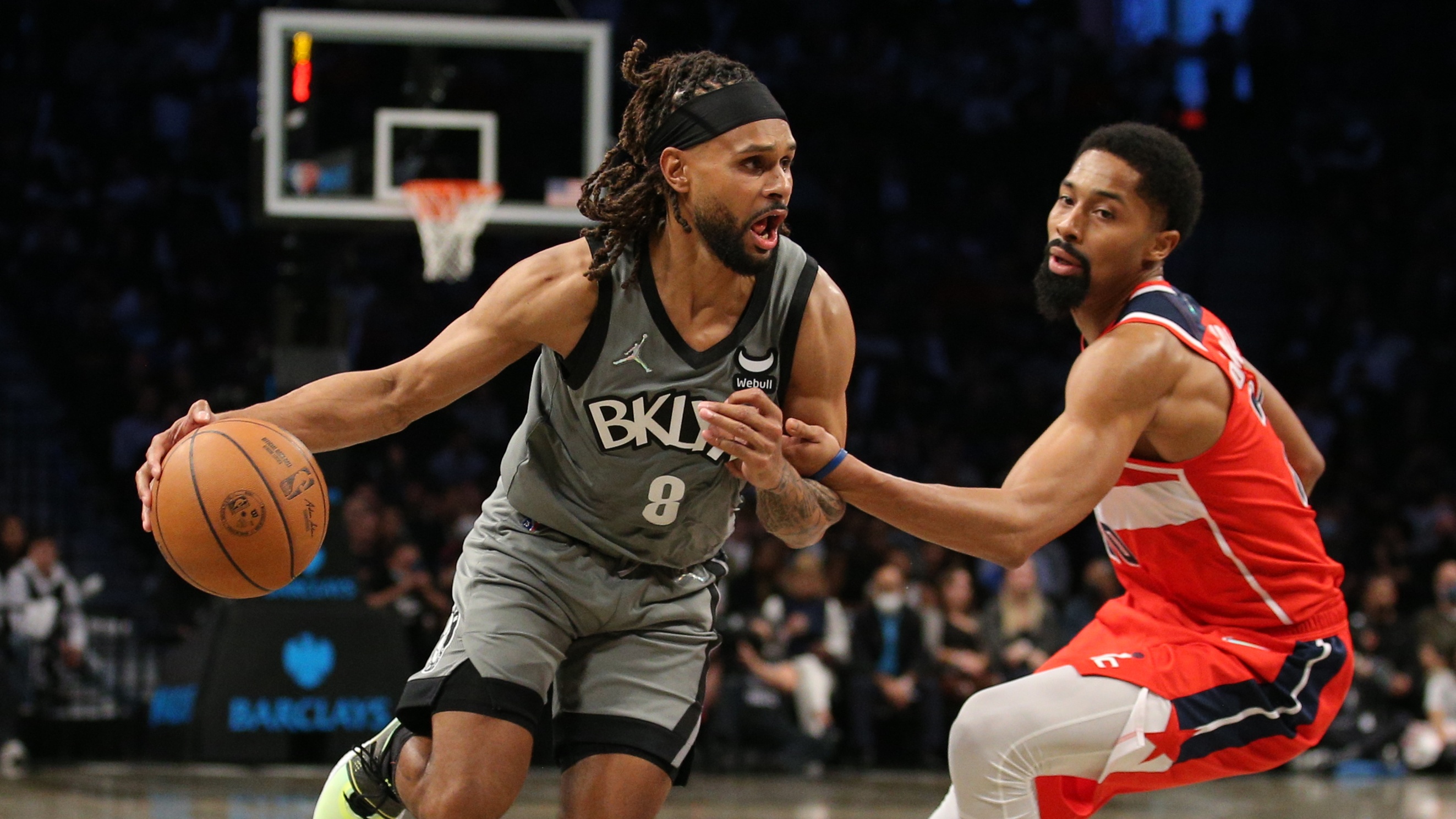 Nets see 'winner' Patty Mills provide spark in rout of Wizards: 'We're going to need that from him''This is all new territory for me'10/26/2021, 4:38 AMGarrett StepienFreelance Editorial ProducerOct 25, 2021; Brooklyn, New York, USA; Brooklyn Nets guard Patty Mills (8) high fives forward Kevin Durant (7) after a three point shot during the third quarter at Barclays Center. Mandatory Credit: Brad Penner-USA TODAY Sports / © Brad Penner-USA TODAY Sports