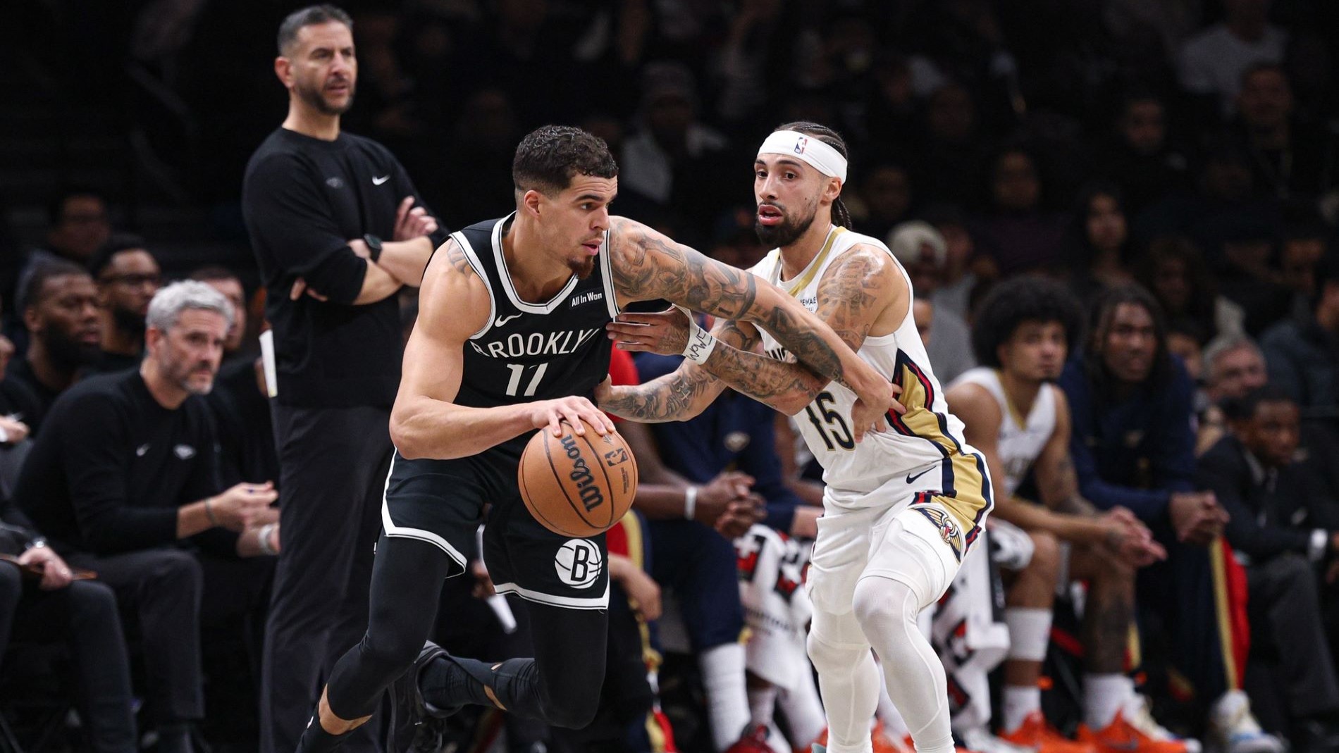 Michael Porter Jr.'s 35 points, Nic Claxton's triple-double lead Nets over Pelicans, 119-101Claxton put up 14 points, 11 rebounds, and 10 assists in the win12/7/2025, 12:27 AMAssociated PressDec 6, 2025; Brooklyn, New York, USA; Brooklyn Nets forward Michael Porter Jr. (17) is guarded by New Orleans Pelicans guard Jose Alvarado (15) during the first half at Barclays Center. / Vincent Carchietta-Imagn Images