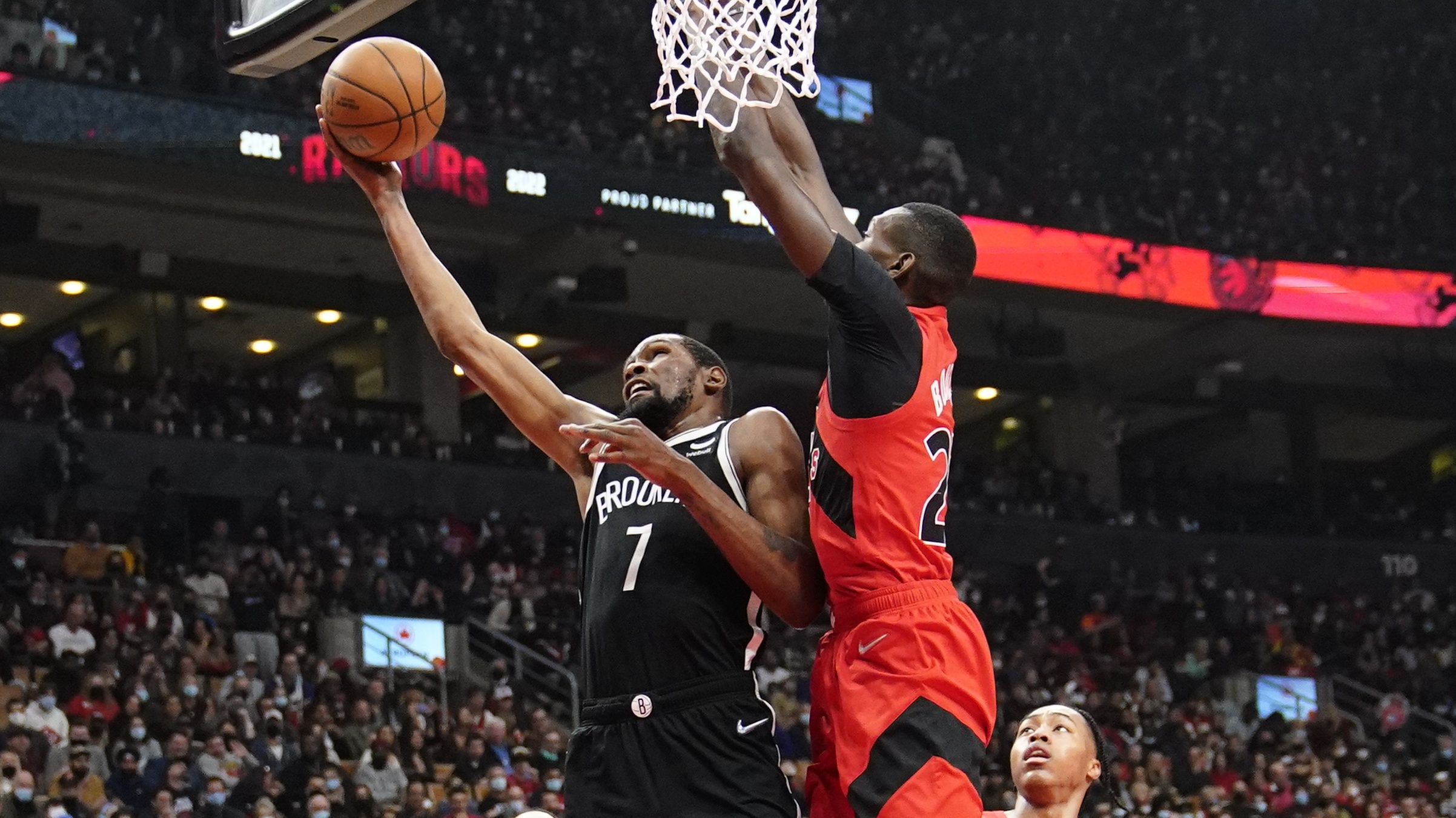 Kevin Durant scores 31 points, Nets beat Raptors for fifth straight winJames Harden added a 28-point, 10-rebound double-double11/7/2021, 11:04 PMNov 7, 2021; Toronto, Ontario, CAN; Brooklyn Nets forward Kevin Durant (7) drives to the net against Toronto Raptors forward Chris Boucher (25) during the first half at Scotiabank Arena. Mandatory Credit: Kevin Sousa-USA TODAY Sports / © Kevin Sousa-USA TODAY Sports