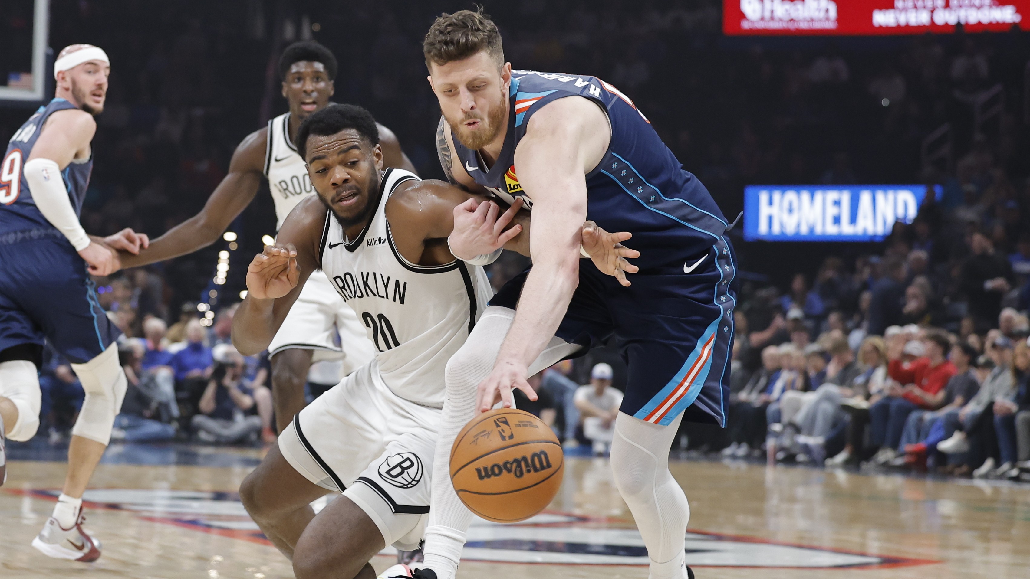 Nets drop third straight in 105-86 loss to ThunderMichael Porter Jr. scored 22 points with nine rebounds and five assists2/21/2026, 4:31 AMAssociated PressFeb 20, 2026; Oklahoma City, Oklahoma, USA; Brooklyn Nets center Day'ron Sharpe (20) and Oklahoma City Thunder center/forward Isaiah Hartenstein (55) reach for a loose ball during the first half at Paycom Center / Alonzo Adams-Imagn Images