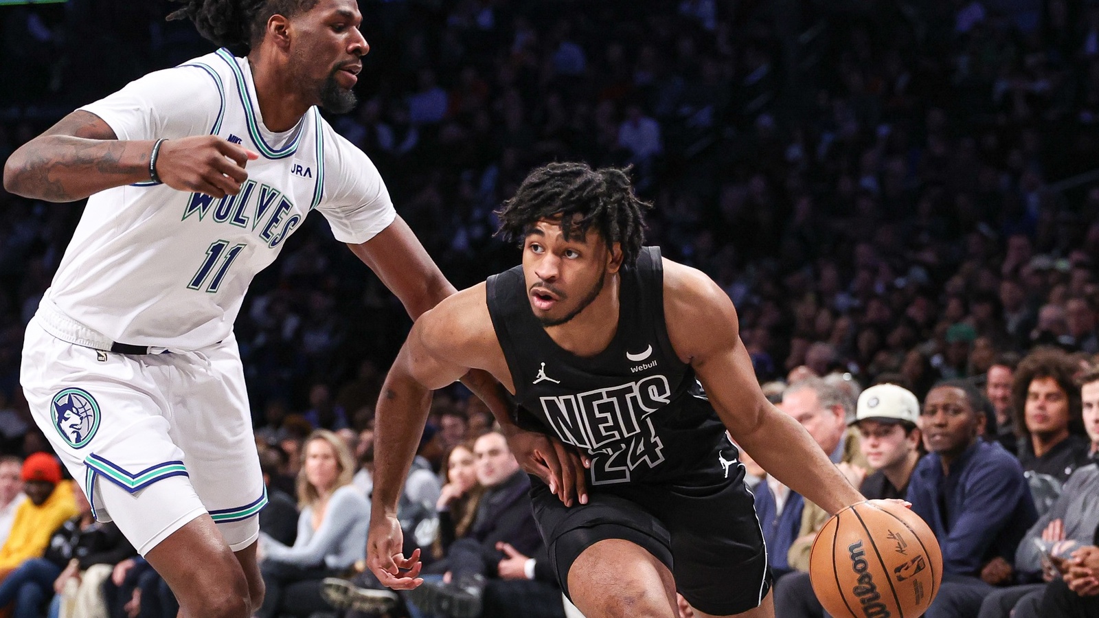 Mikal Bridges' missed free throws prove costly in Nets' 96-94 loss to TimberwolvesBrooklyn has lost seven of their last eight games1/26/2024, 3:36 AMAssociated PressBrooklyn Nets guard Cam Thomas (24) dribbles toward the basket while defended by Minnesota Timberwolves center Naz Reid (11) during the first quarter at Barclays Center. / Vincent Carchietta-USA TODAY Sports