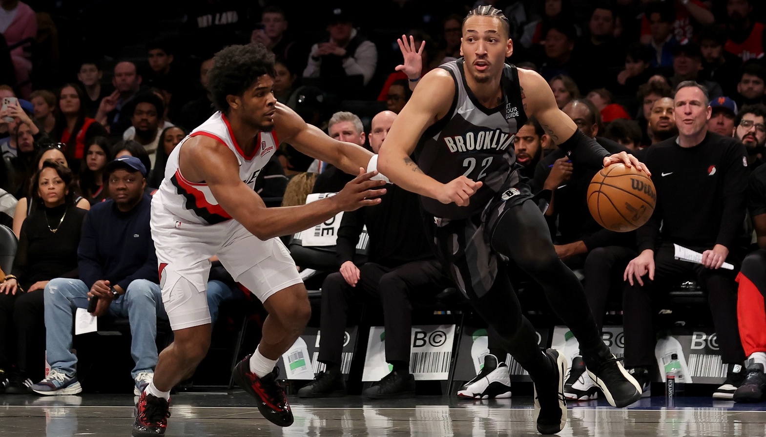 Nets lose steam in fourth quarter, fall 121-102 to Trail BlazersBrooklyn cut Blazers' 26-point lead to nine entering final quarter3/1/2025, 3:25 AMAssociated PressBrooklyn Nets forward Jalen Wilson (22) drives to the basket against Portland Trail Blazers guard Scoot Henderson (00) during the first quarter at Barclays Center. / Brad Penner-Imagn Images