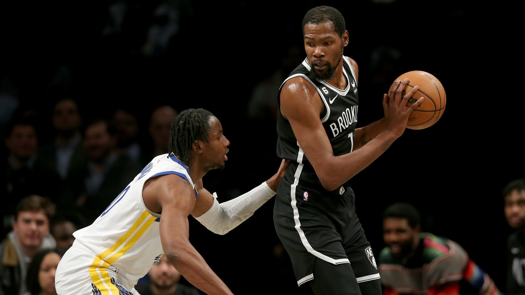 Nets dominate in 143-113 win over WarriorsNine Nets scored in double figures12/22/2022, 2:58 AMDec 21, 2022; Brooklyn, New York, USA; Brooklyn Nets forward Kevin Durant (7) controls the ball against Golden State Warriors forward Jonathan Kuminga (00) during the first quarter at Barclays Center. / Brad Penner-USA TODAY Sports