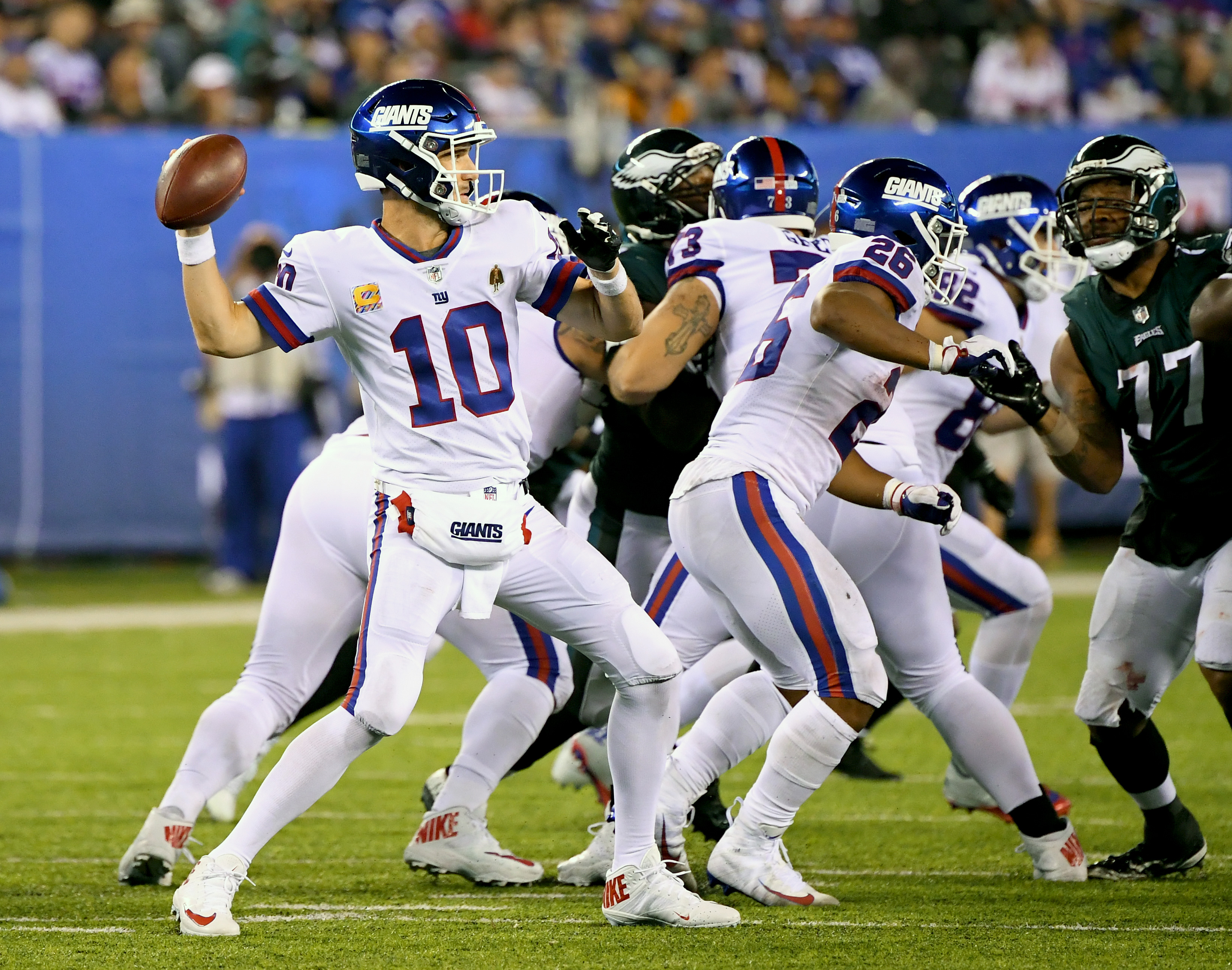 New York Giants Week 12 preview and predictionGiants go for third straight win, revenge vs. Eagles11/25/2018, 2:30 PMNew York Giants quarterback Eli Manning throws in the third quarter against the Philadelphia Eagles at MetLife Stadium. / Robert Deutsch/USA TODAY Sports