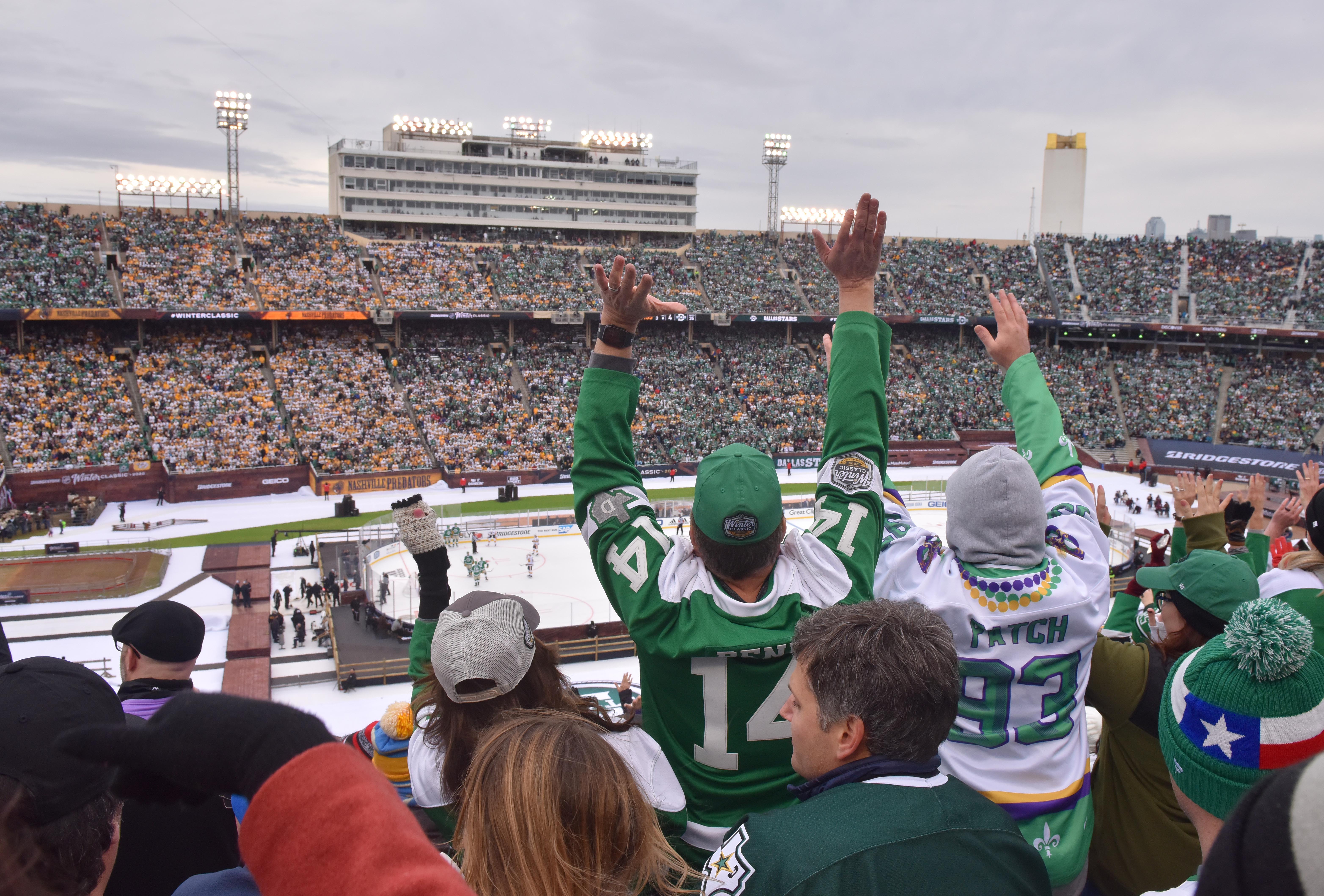 Jan 1, 2020; Dallas, TX, USA; Dallas Stars fans cheer as they watch during the third period in the 2020 Winter Classic hockey game against the Nashville Predators at Cotton Bowl Stadium. / Tim Flores-USA TODAY Sports
