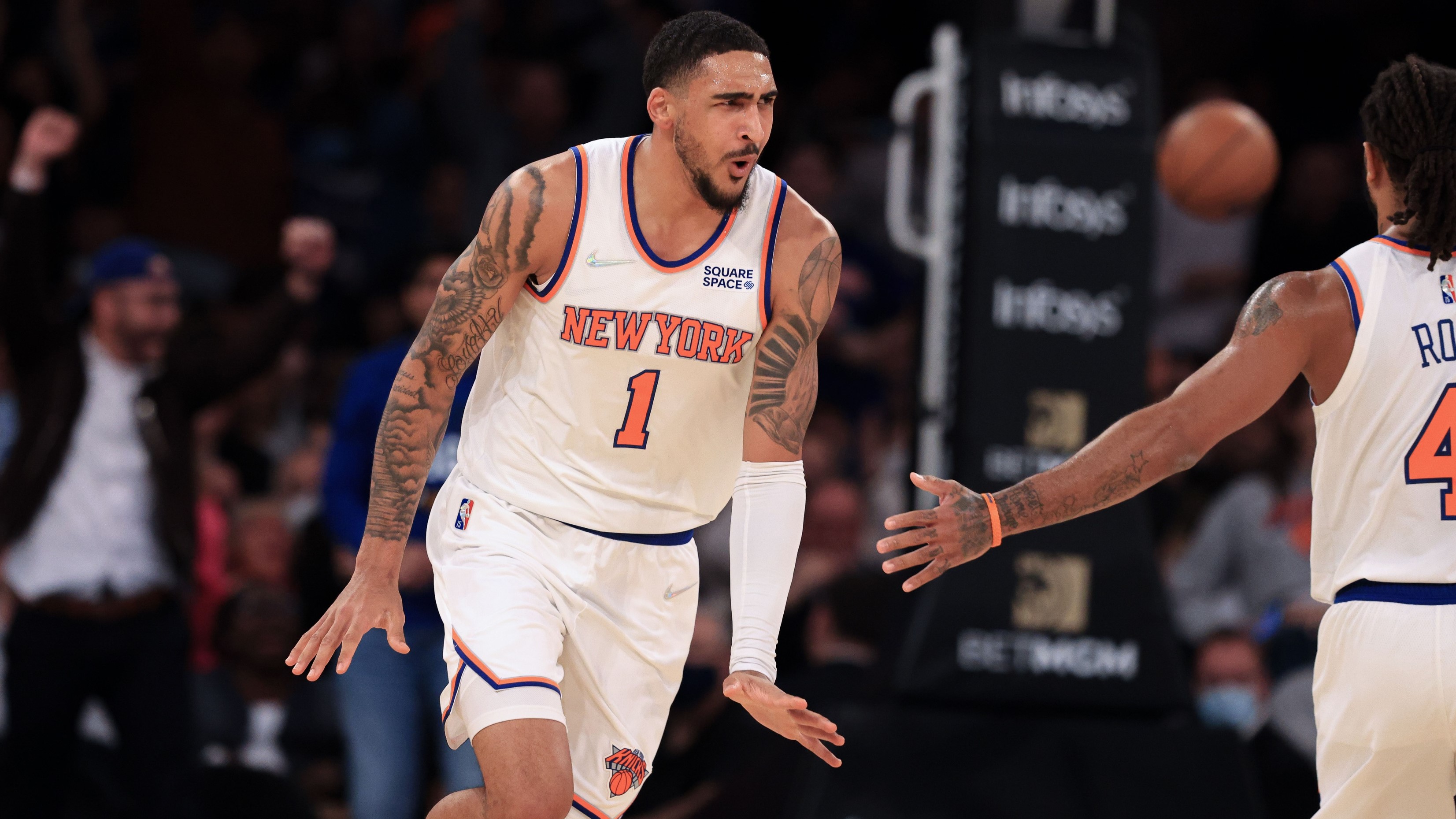 Obi Toppin back with Knicks after clearing health and safety protocolsThe Knicks still have six players out due to COVID-1912/22/2021, 10:09 PMRyan MorikFreelance Editorial ProducerNov 15, 2021; New York, New York, USA; New York Knicks forward Obi Toppin (1) reacts after a dunk against the Indiana Pacers during the first half at Madison Square Garden. / Vincent Carchietta-USA TODAY Sports