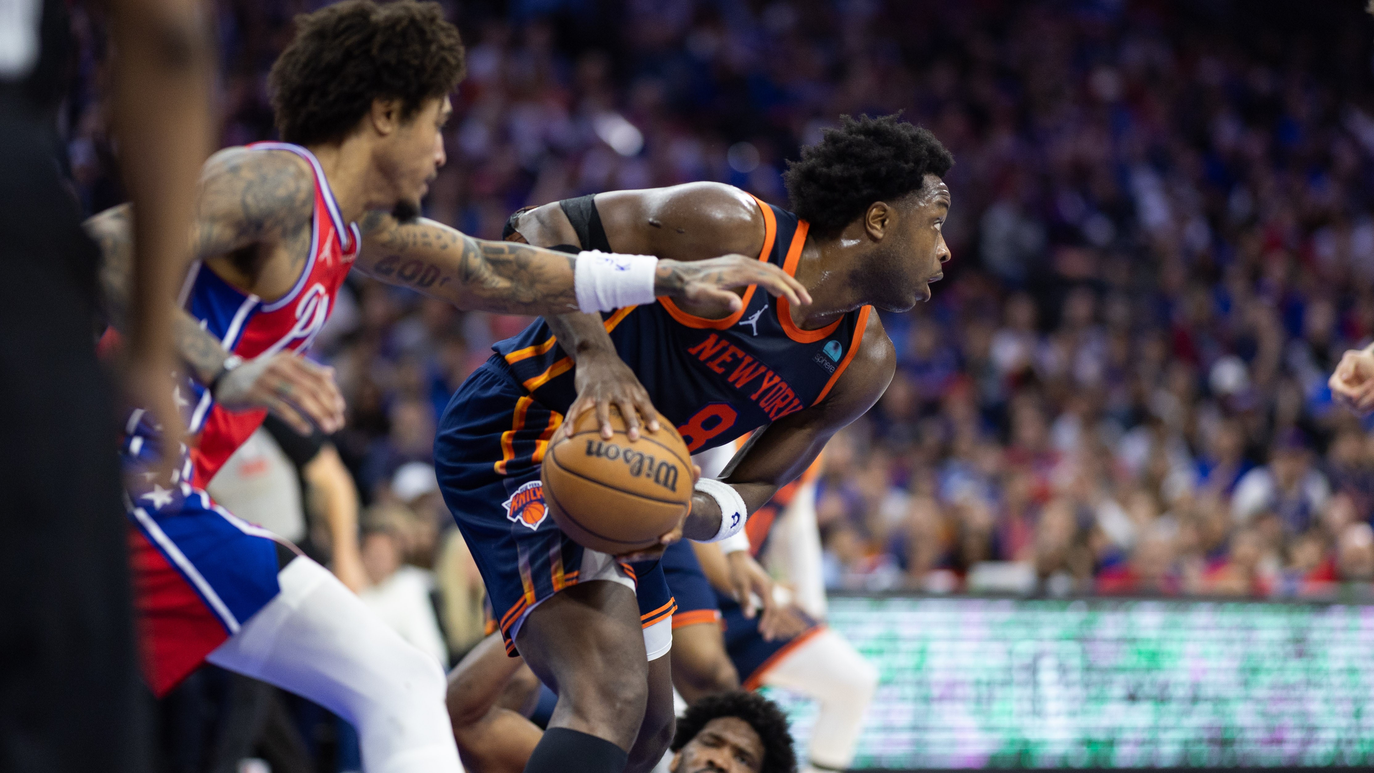 OG Anunoby, Precious Achiuwa rise to occasion against Joel Embiid in Knicks' Game 4 win at 76ersJosh Hart: 'I don't think you can give them enough credit, honestly'4/29/2024, 1:42 AMIan BegleyNBA InsiderApr 28, 2024; Philadelphia, Pennsylvania, USA; Philadelphia 76ers guard Tyrese Maxey (0) controls the ball against the New York Knicks during the first half of game four of the first round in the 2024 NBA playoffs at Wells Fargo Center. Mandatory Credit: Bill Streicher-USA TODAY Sports / © Bill Streicher-USA TODAY SportsApr 28, 2024; Philadelphia, Pennsylvania, USA; Philadelphia 76ers center Joel Embiid (21) drives for a shot against New York Knicks forward Precious Achiuwa (5) during the first half of game four of the first round in the 2024 NBA playoffs at Wells Fargo Center. Mandatory Credit: Bill Streicher-USA TODAY Sports / © Bill Streicher-USA TODAY Sports