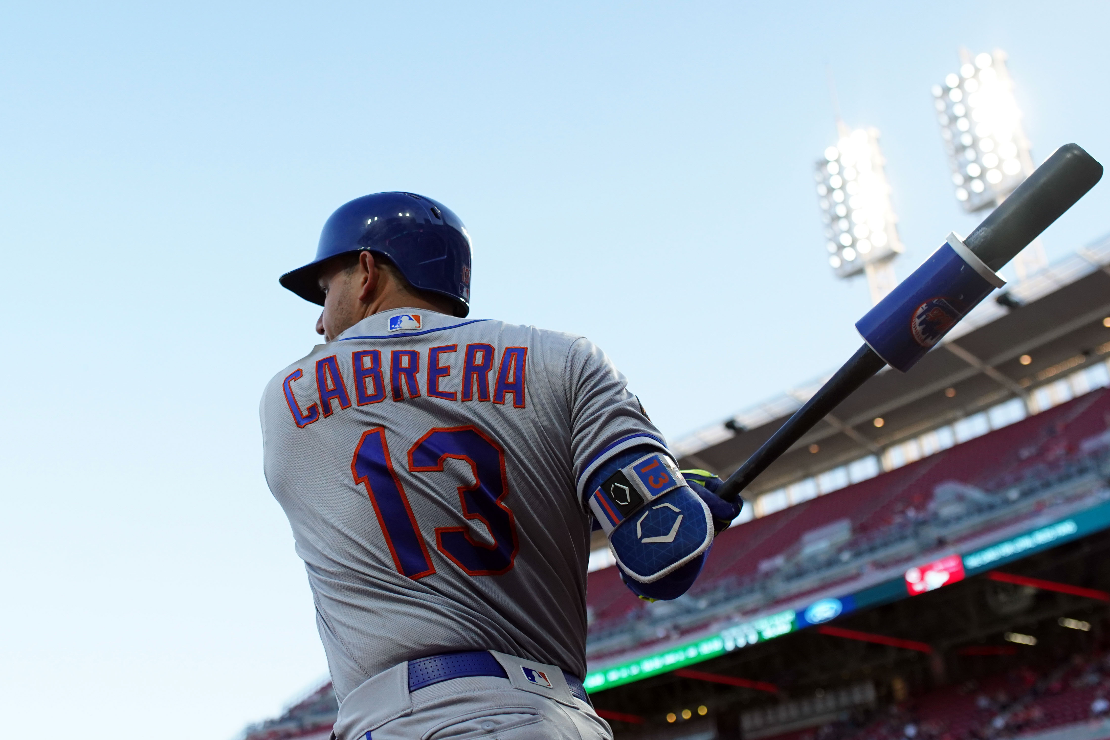 May 8, 2018; Cincinnati, OH, USA; New York Mets shortstop Asdrubal Cabrera (13) against the Cincinnati Reds at Great American Ball Park. Mandatory Credit: Aaron Doster-USA TODAY Sports / Aaron Doster
