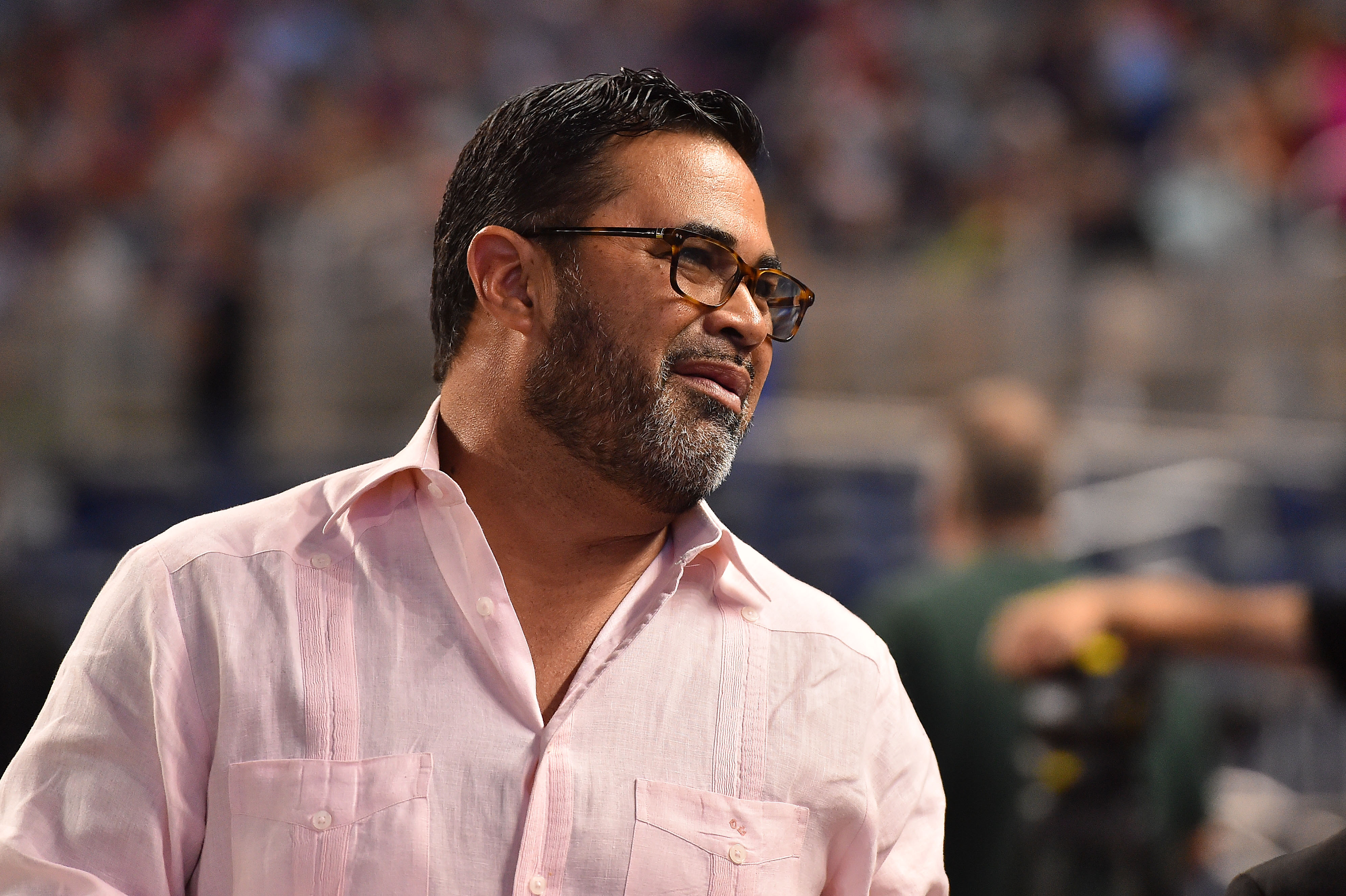 Jul 29, 2016; Miami, FL, USA; Miami Marlins former manager Ozzie Guillen walks on the field before the game between the Miami Marlins and the St. Louis Cardinals at Marlins Park. Mandatory Credit: Jasen Vinlove-USA TODAY Sports / Jasen Vinlove