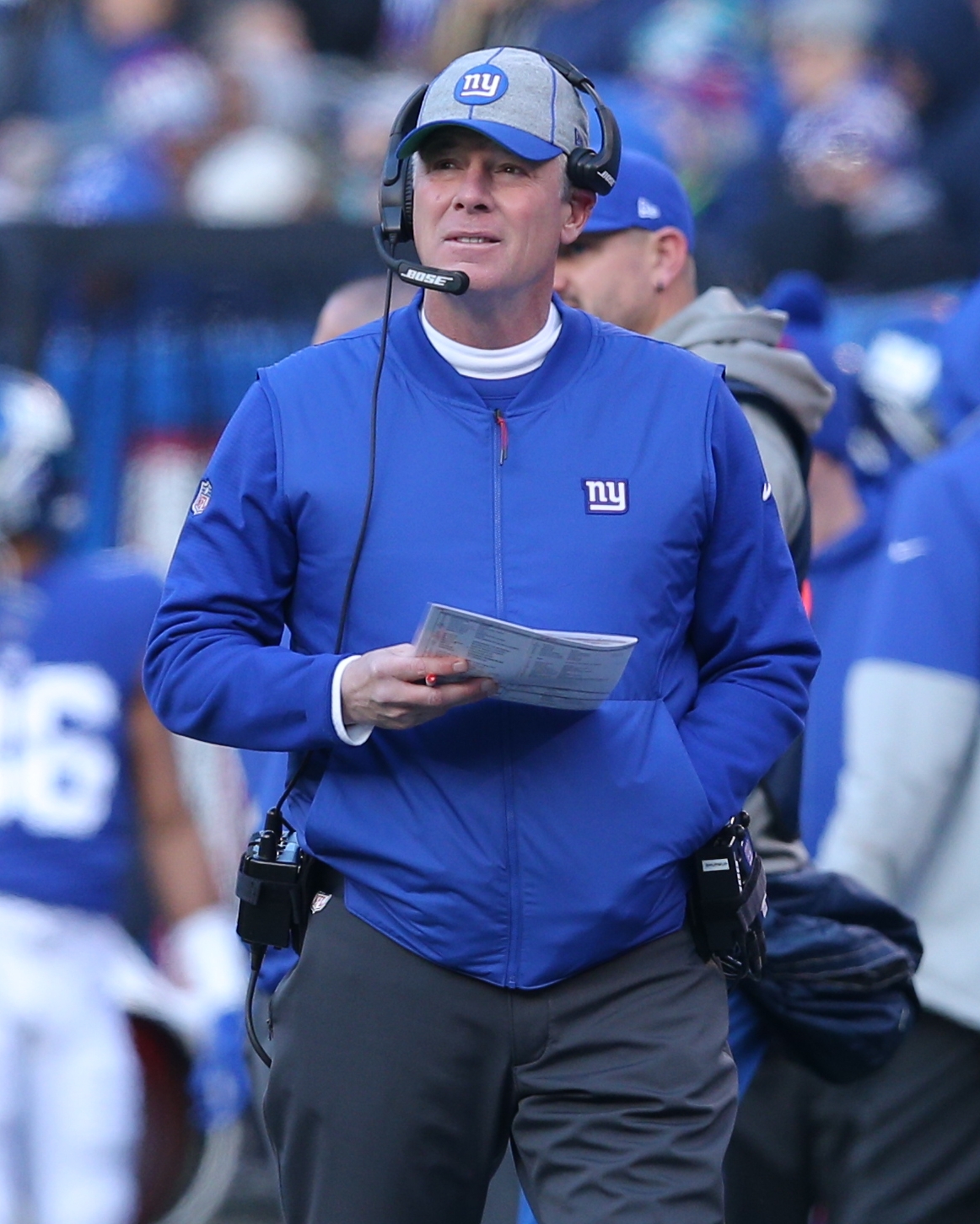 Dec 15, 2019; East Rutherford, NJ, USA; New York Giants head coach Pat Shurmur coaches against the Miami Dolphins during the second quarter at MetLife Stadium. Mandatory Credit: Brad Penner-USA TODAY Sportsundefined