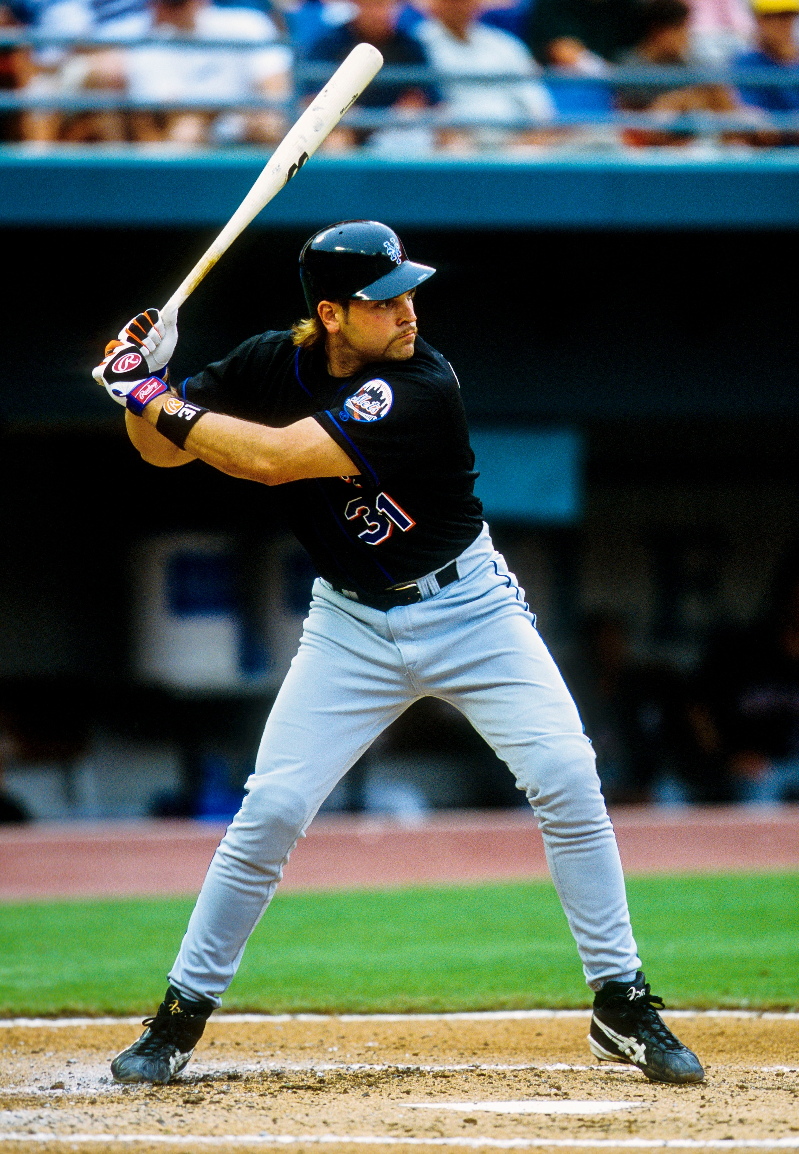 Pete Alonso again clamors for return of Mets' black uniforms: 'So many Mets greats wore the black''The orange and blue accents are like the city lights in the night sky'4/12/2020, 1:42 PMNew York Mets catcher Mike Piazza in action at the plate at Dolphin Stadium during the 2002 season. / RVR Photos-USA TODAY Sports