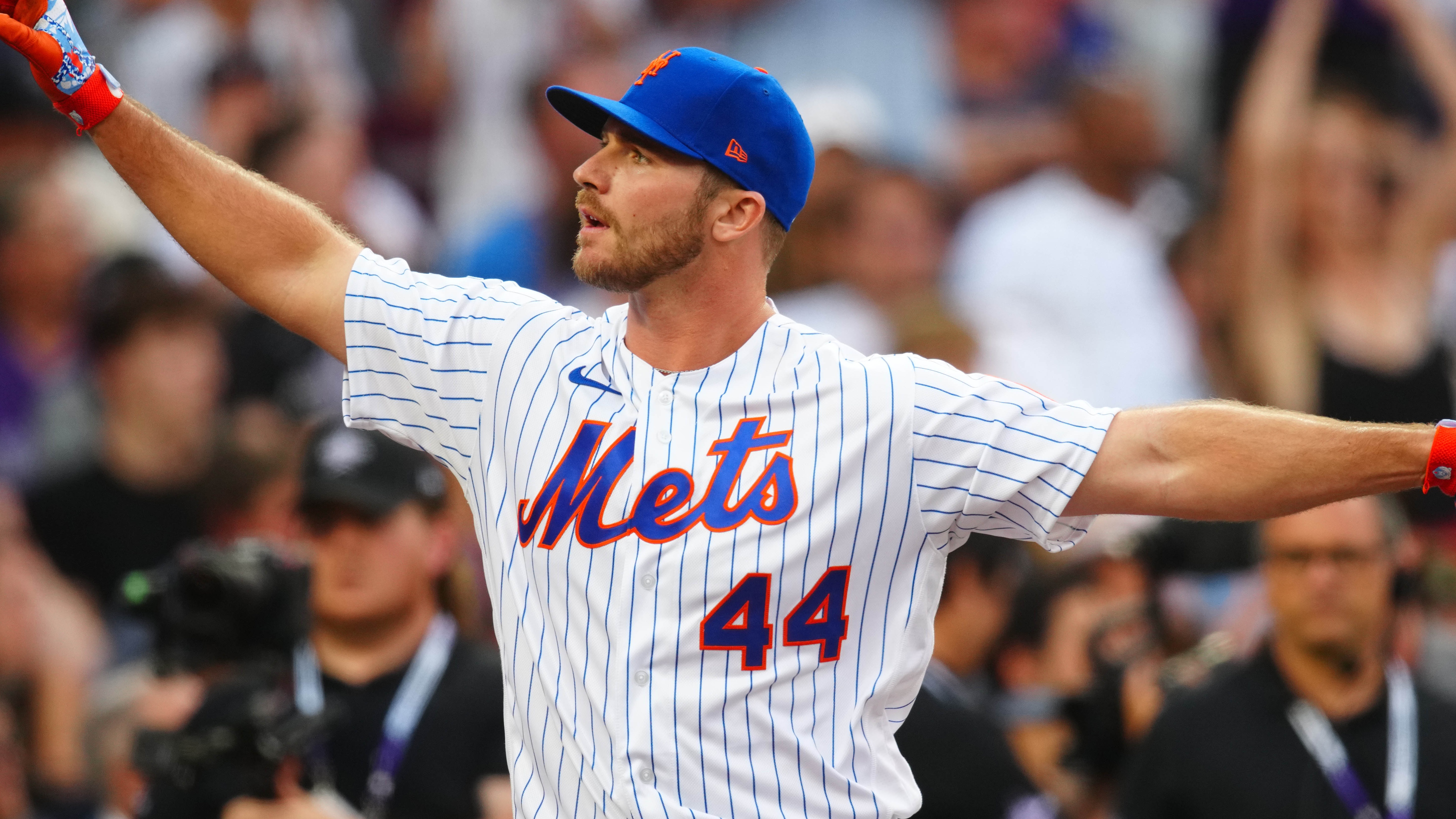 Pete Alonso goes back-to-back, wins 2021 Home Run DerbySet new first round record, becomes second to go back-to-back7/13/2021, 2:54 AMCoby GreenFreelance Editorial ProducerJul 12, 2021; Denver, CO, USA; New York Mets first baseman Pete Alonso celebrtes with bench coach Dave Jauss following his victory against Baltimore Orioles first baseman Trey Mancini in the 2021 MLB Home Run Derby. / © Isaiah J. Downing-USA TODAY Sports
