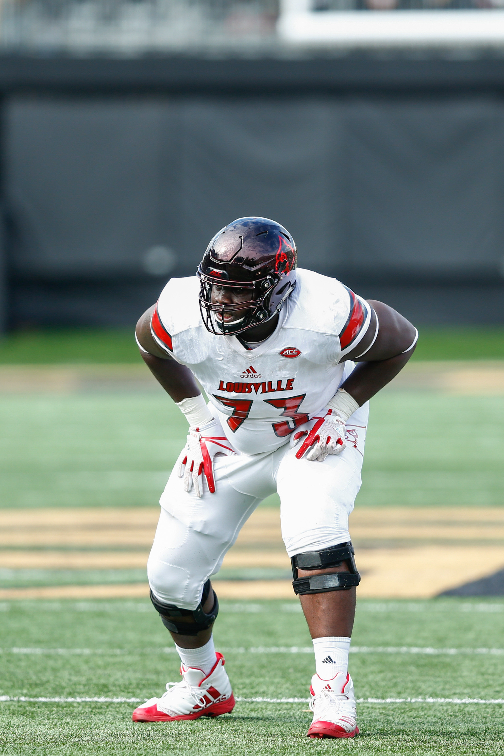 Oct 28, 2017; Winston-Salem, NC, USA; Louisville Cardinals offensive lineman Mekhi Becton (73) lines up during the game against the Wake Forest Demon Deacons at BB&T Field. Mandatory Credit: Jeremy Brevard-USA TODAY Sports / Jeremy Brevard