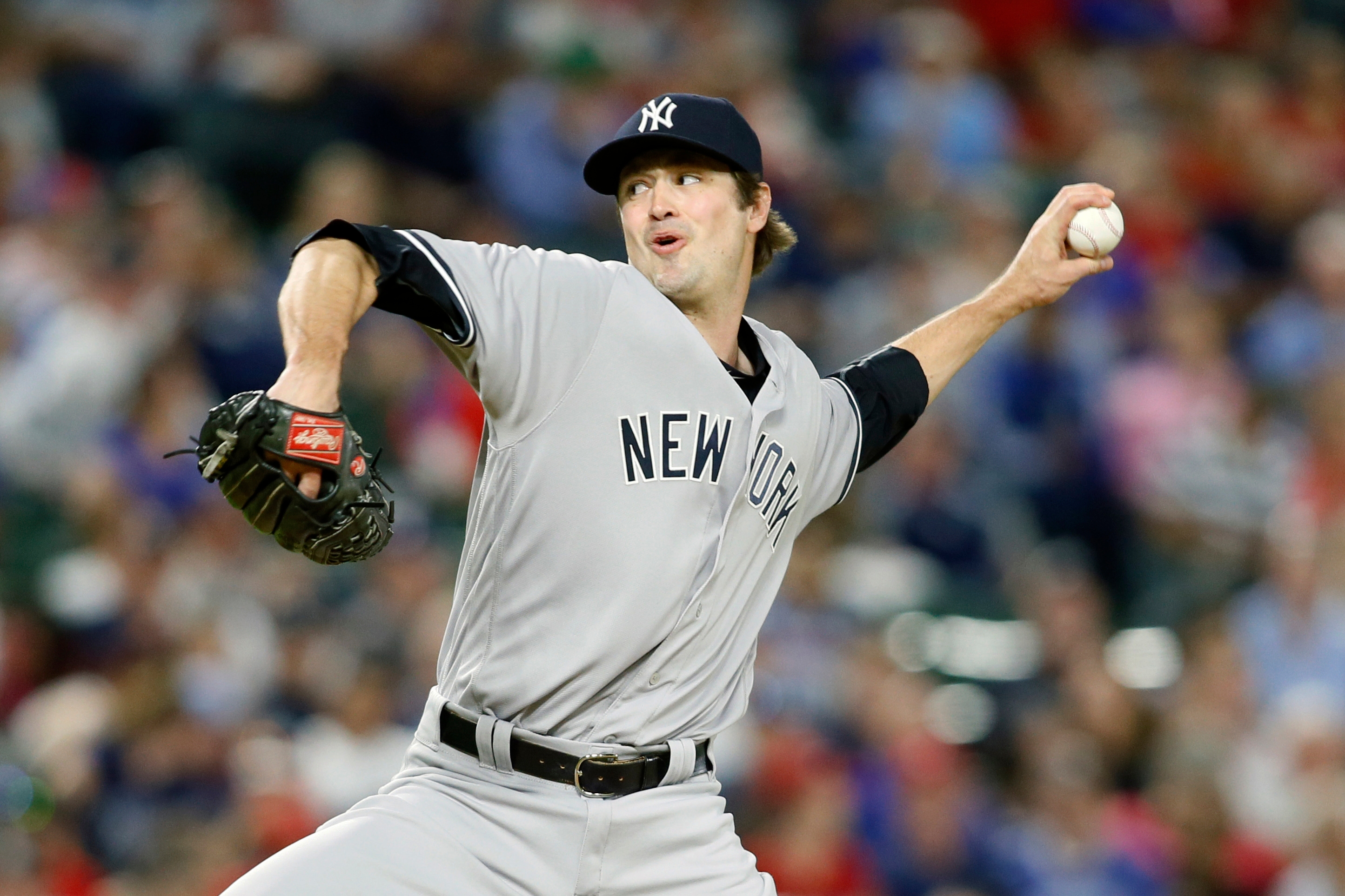 New York Yankees relief pitcher Andrew Miller (48) throws a pitch in the ninth inning against the Texas Rangers at Globe Life Park in Arlington. New York won 3-1. / Tim Heitman