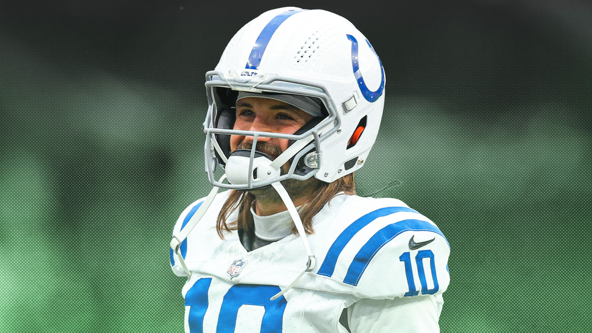 Dec 31, 2023; Indianapolis, Indiana, USA; Indianapolis Colts quarterback Gardner Minshew II (10) takes the field during a game against the Las Vegas Raiders at Lucas Oil Stadium. / Hali Tauxe-USA TODAY Sports