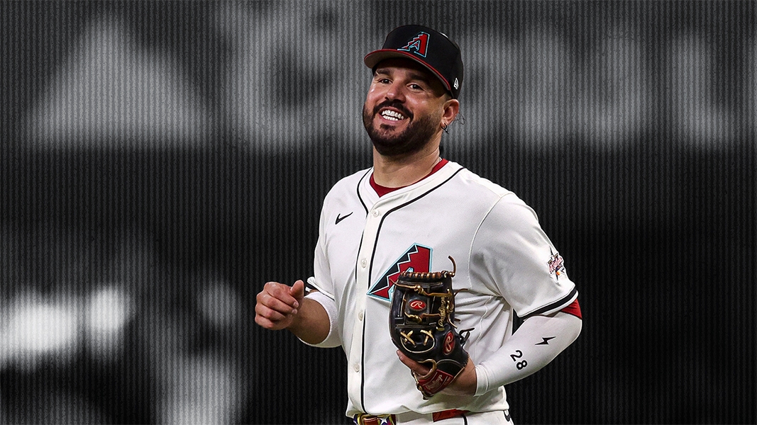 National League third baseman Eugenio Suarez (28) of the Arizona Diamondbacks reacts after getting hit by a pitch in the eighth inning during the 2025 MLB All Star Game at Truist Park / Brett Davis - Imagn Images