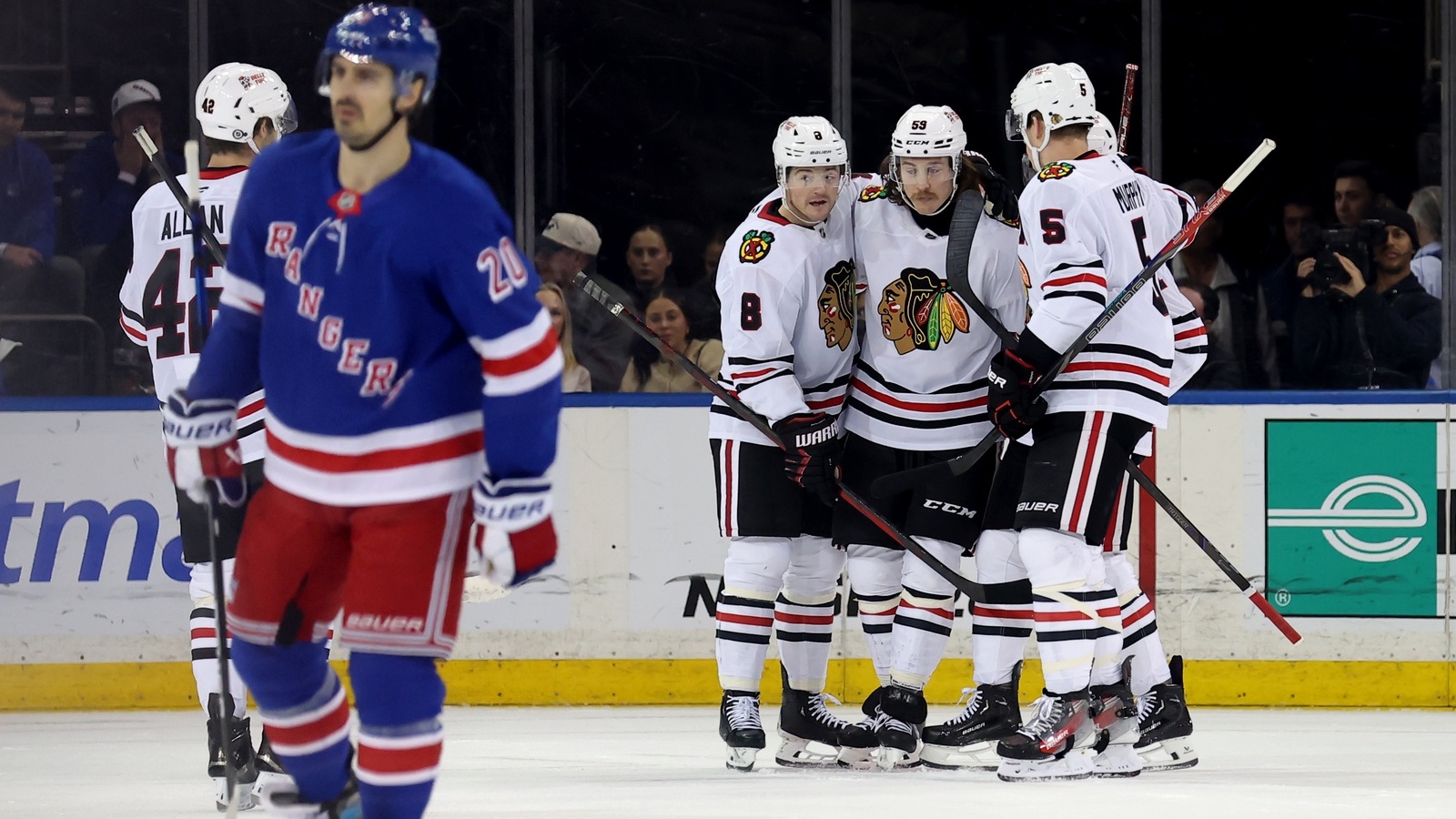 Rangers' woes grow in loss to last-place BlackhawksNew York is 2-8 in last 10 games12/10/2024, 3:02 AMAssociated PressChicago Blackhawks left wing Tyler Bertuzzi (59) celebrates his goal against the New York Rangers with teammates during the first period at Madison Square Garden. / Brad Penner-Imagn Images