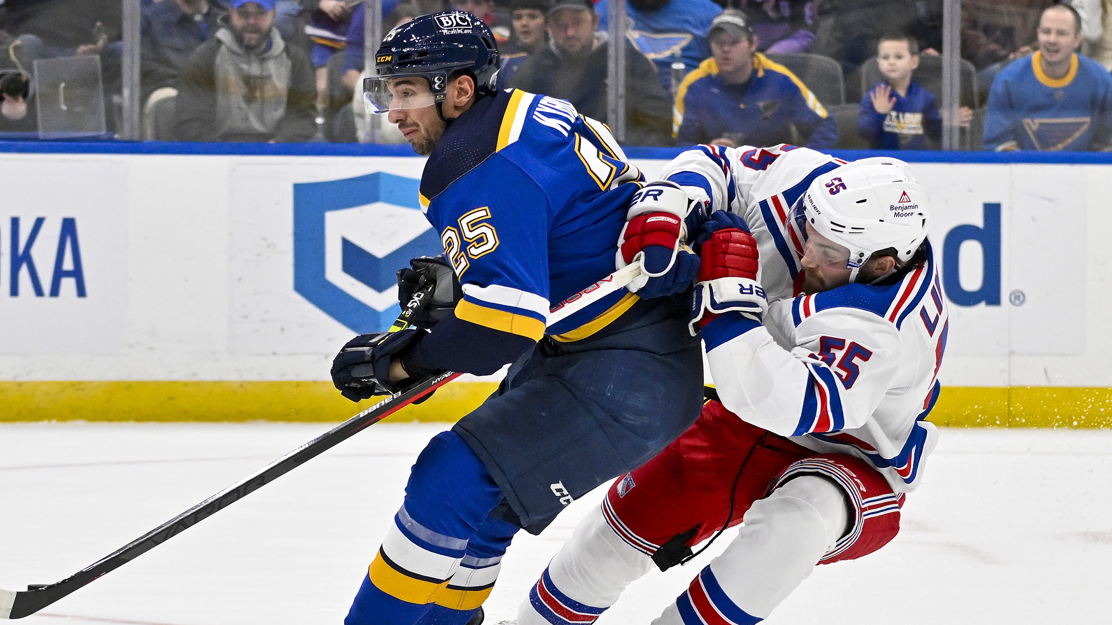 Rangers drop third straight for first time this season with 5-2 loss to BluesJordan Binnington made 41 saves for St. Louis1/12/2024, 3:48 AMAssociated PressNew York Rangers defenseman Ryan Lindgren (55) defends against St. Louis Blues center Jordan Kyrou (25) during the second period at Enterprise Center / Jeff Curry - USA TODAY Sports