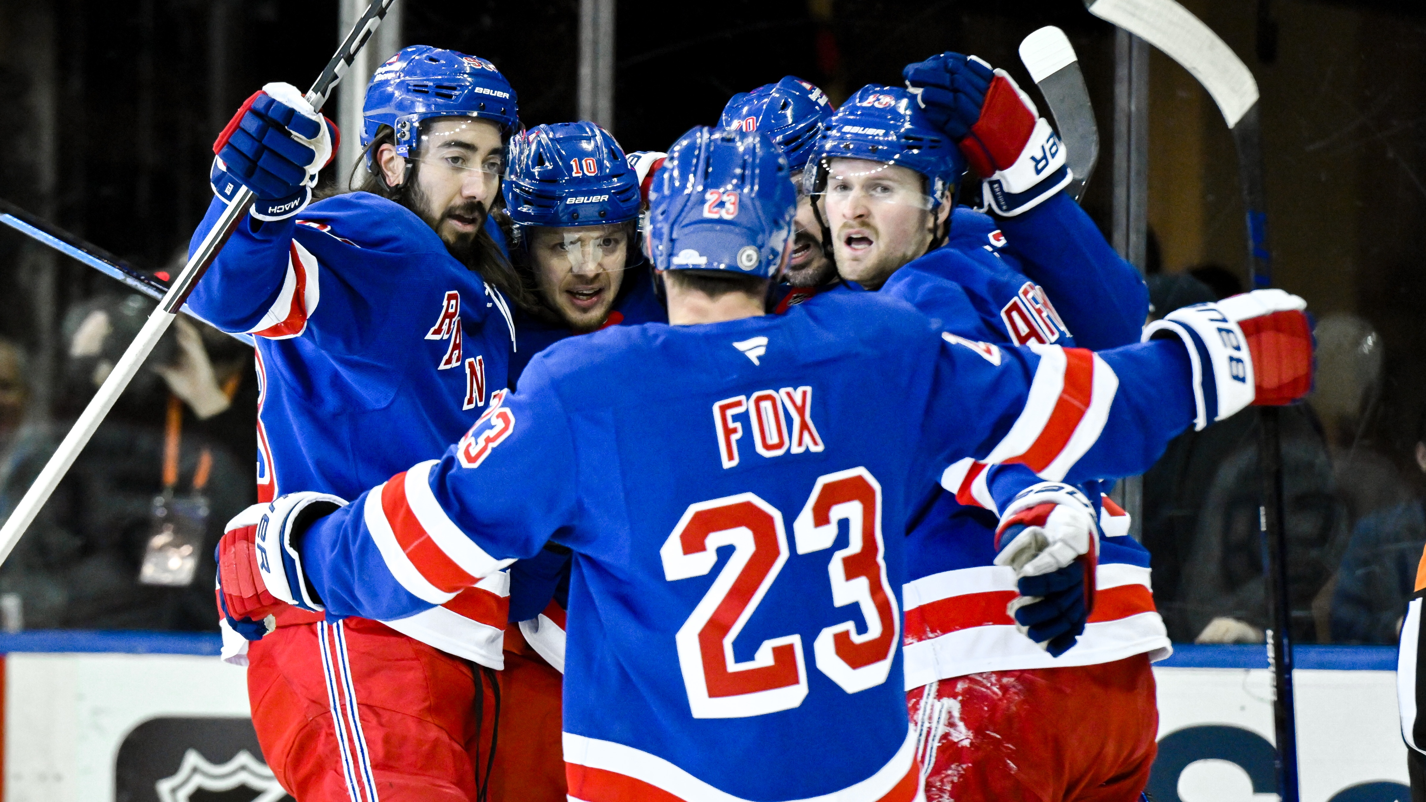 Rangers score three power-play goals, snap losing streak with 4-3 win over CanadiensArtemi Panarin, Mika Zibanejad, Kaapo Kakko scored with the man advantage11/30/2024, 8:58 PMJohn FlaniganFreelance Editorial ProducerNew York Rangers left wing Artemi Panarin (10) celebrates with teammates after scoring a goal against the Montreal Canadiens during the first period at Madison Square Garden / John Jones - Imagn Images