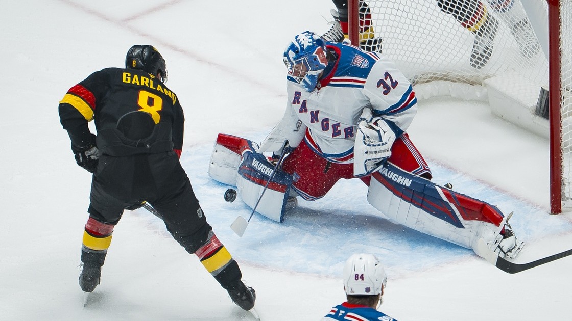 Jonathan Quick's shutout lifts Rangers to 2-0 win over CanucksQuick made 23 saves in Tuesday's win10/29/2025, 5:25 AMAssociated PressOct 28, 2025; Vancouver, British Columbia, CAN; New York Rangers goalie Jonathan Quick (32) makes a save on Vancouver Canucks forward Conor Garland (8) in the first period at Rogers Arena. / Bob Frid-Imagn Images
