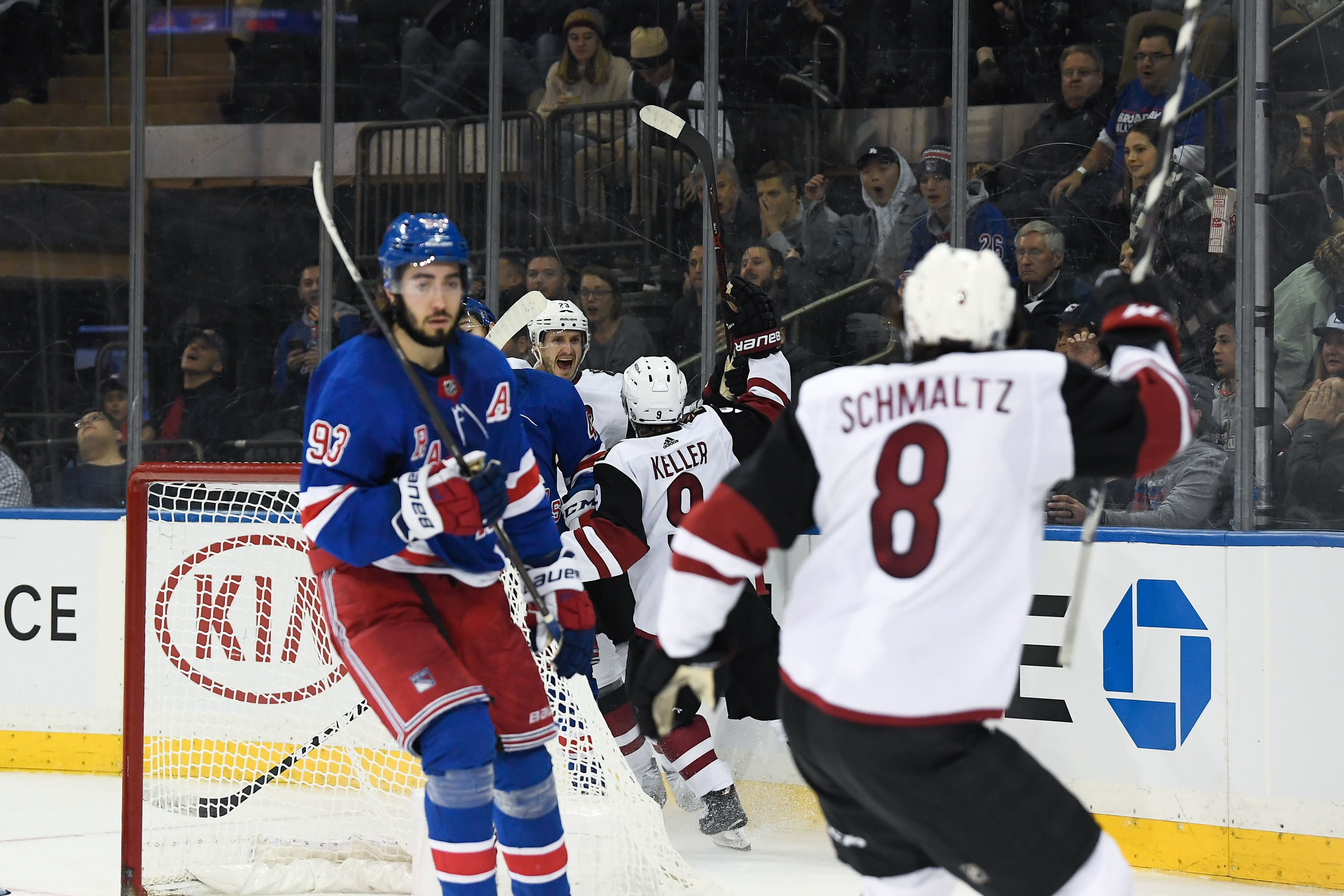 Dec 14, 2018; New York, NY, USA; Arizona Coyotes right wing defenseman Oliver Ekman-Larsson (23) celebrates after scoring a goal against the New York Rangers in the third period at Madison Square Garden. Mandatory Credit: Catalina Fragoso-USA TODAY Sports / Catalina Fragoso