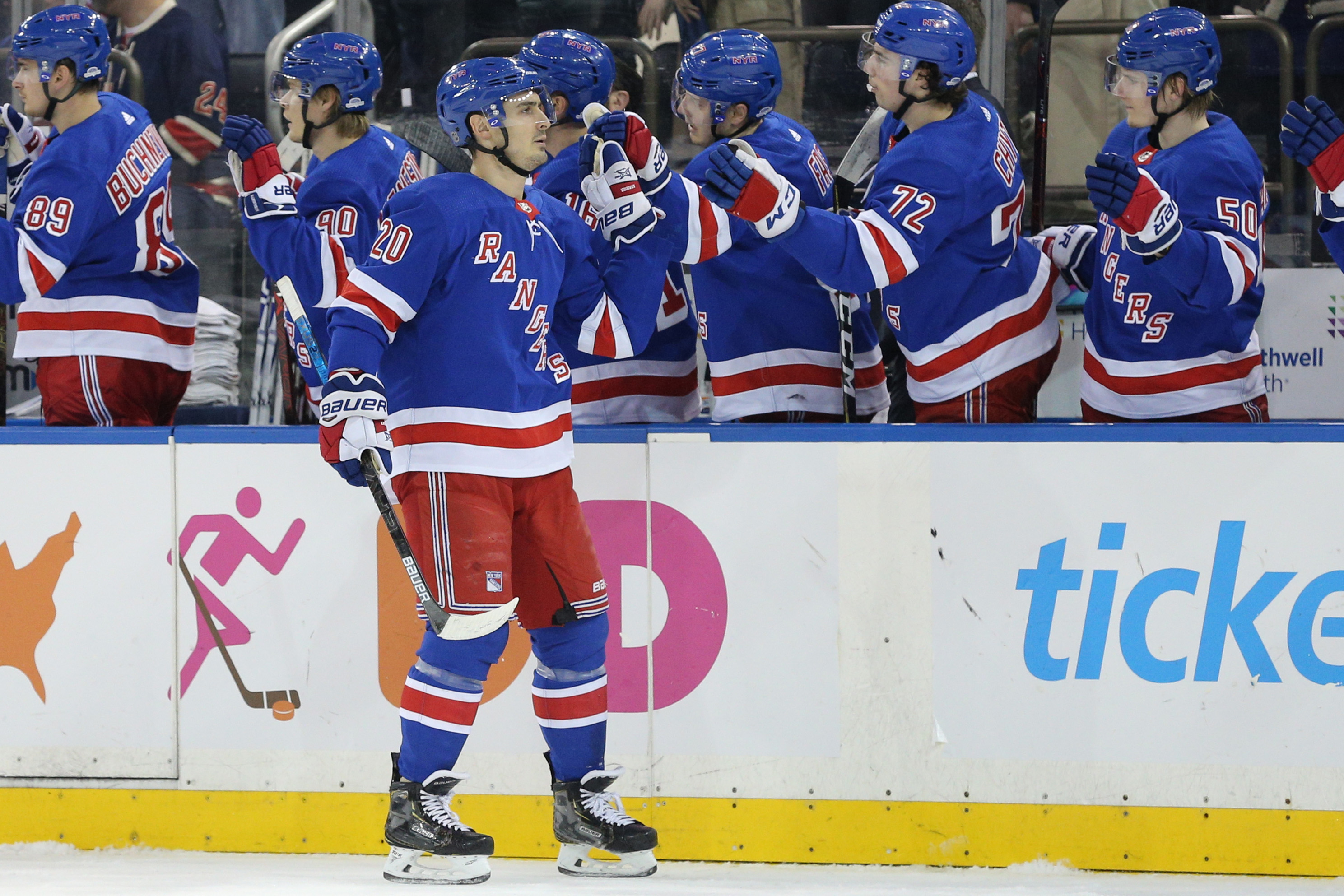 Mar 14, 2018; New York, NY, USA; New York Rangers goalie Alexandar Georgiev (40) makes a save against the Pittsburgh Penguins during the first period at Madison Square Garden. Mandatory Credit: Brad Penner-USA TODAY Sports / Brad Penner