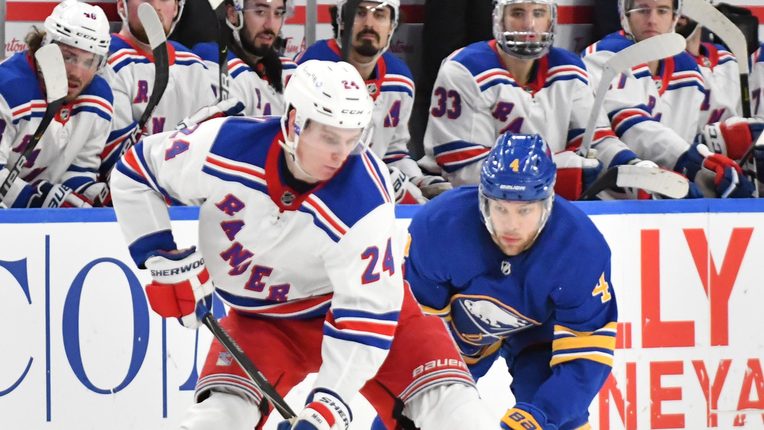 Rangers' Kaapo Kakko enters COVID-19 protocolForward has three points in 14 games this season2/20/2021, 5:20 PMNew York Rangers right wing Kaapo Kakko (24) keeps the puck from Buffalo Sabres left wing Taylor Hall (4) in the third period at KeyBank Center. / Mark Konezny