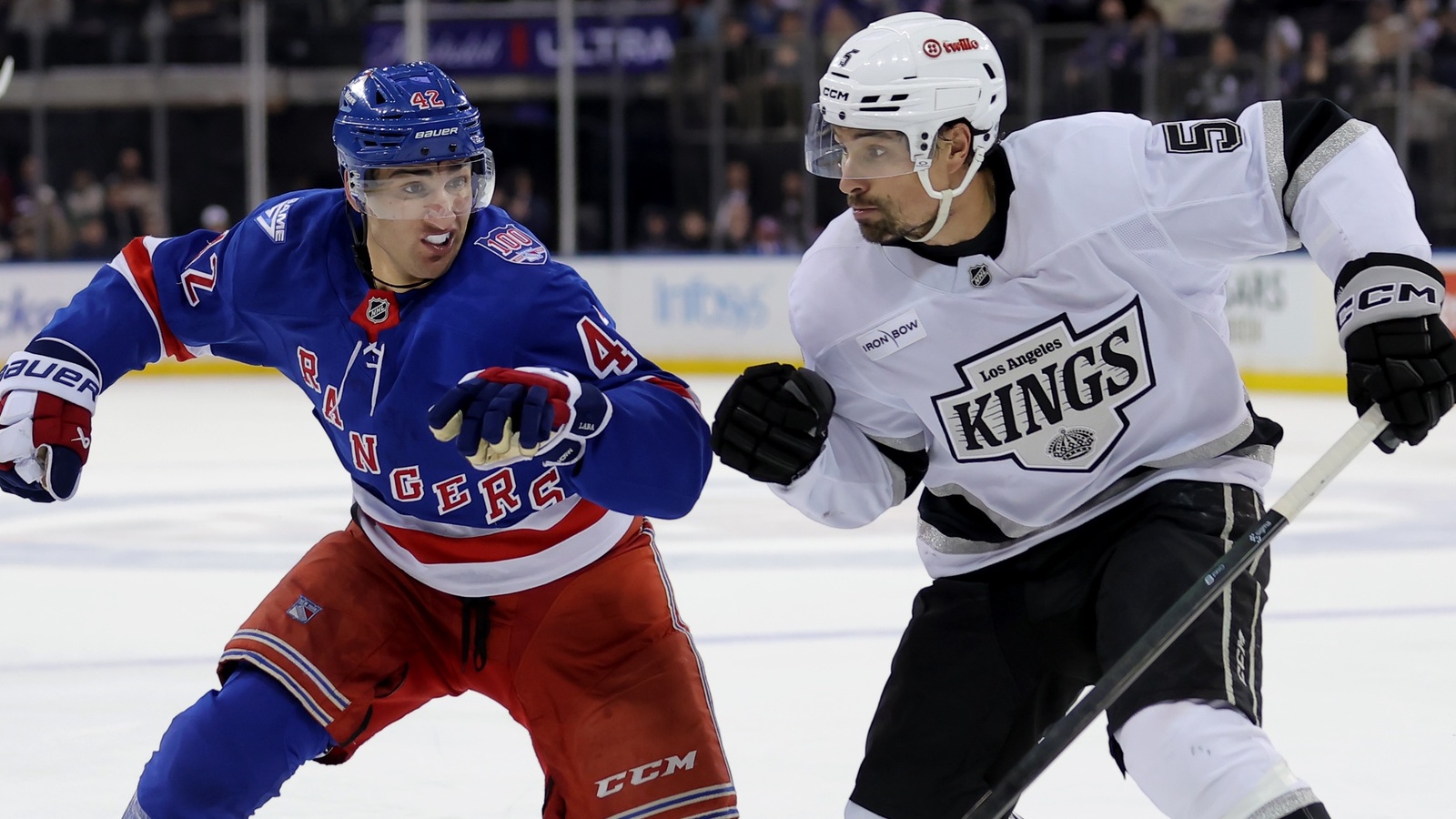 Rangers' win streak halted by 4-1 loss to KingsArtemi Panarin had an assist in return to MSG3/17/2026, 1:51 AMAssociated PressNew York Rangers center Noah Laba (42) skates against Los Angeles Kings defenseman Cody Ceci (5) during the second period at Madison Square Garden. / Brad Penner-Imagn Images