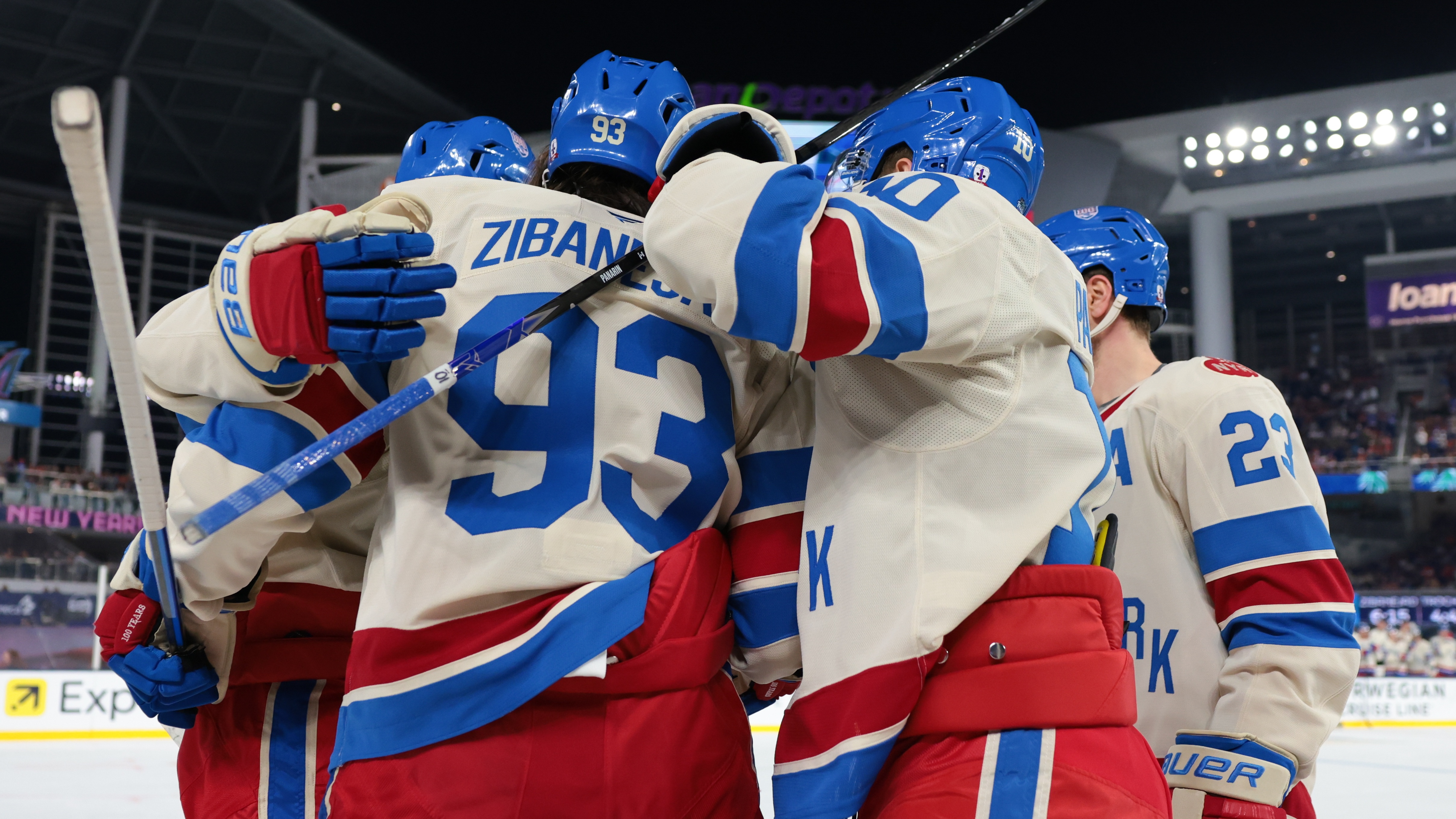 SEE IT: Rangers’ Mika Zibanejad records first ever hat trick in Winter Classic historyZibanejad played a part in all five of New York's goals1/3/2026, 2:23 AMJohn FlaniganFreelance Editorial ProducerNew York Rangers center Mika Zibanejad (93) celebrates with teammates after scoring a goal against the Florida Panthers during the first period in the 2026 Winter Classic ice hockey game at loanDepot Park / Sam Navarro - Imagn Images