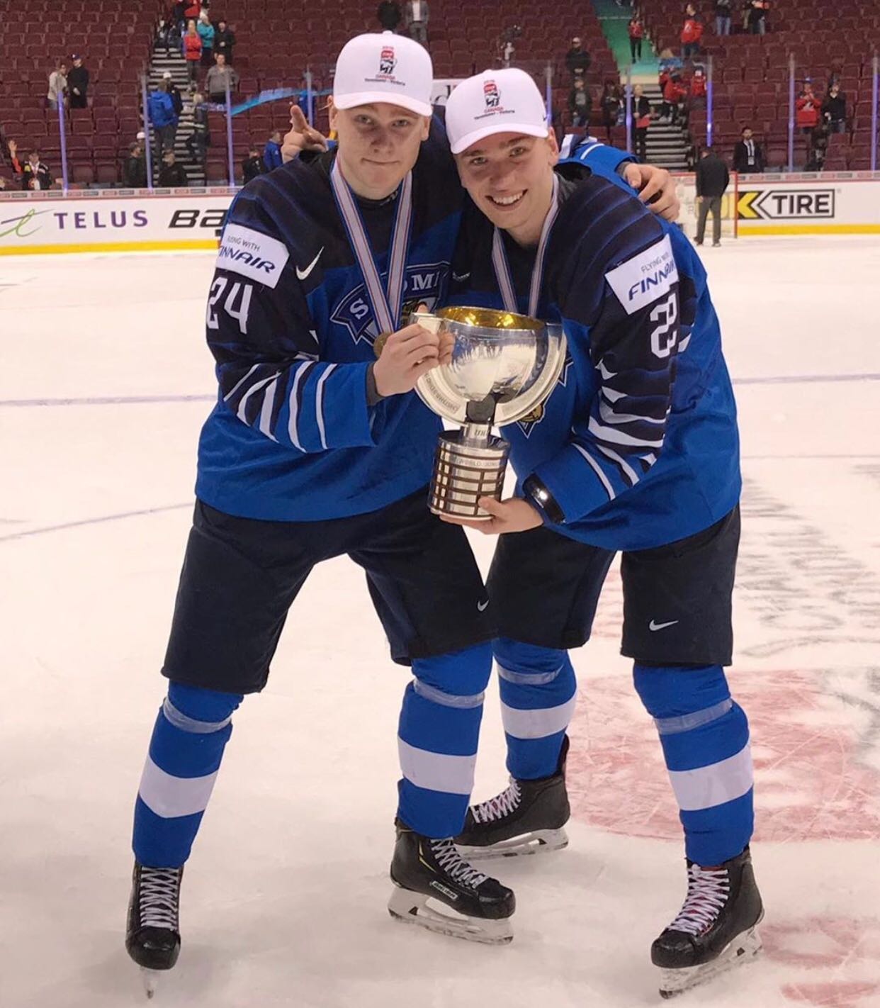 Finnish prospect Kaapo Kakko (left) posing with teammate Santeri Virtanen after winning the 2019 IIHF World Junior Championship. / Kaapo Kakko on Instagram/@kaapokakko