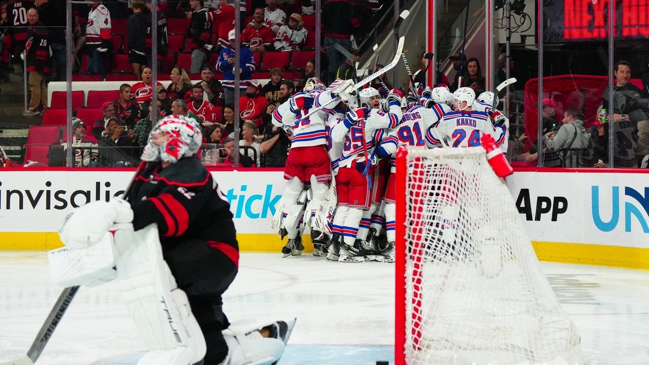 After Hurricanes' late equalizer, Artemi Panarin rises up to challenge and puts Rangers up 3-0'It was clutch. He’s been amazing for us all year and keeps it going in the playoffs'5/10/2024, 4:30 AMAnthony McCarronMLB freelance writer/on-air talentNew York Rangers left wing Alexis Lafreniere (13) celebrates his goal against the Carolina Hurricanes during the third period in game three of the second round of the 2024 Stanley Cup Playoffs at PNC Arena. / James Guillory-USA TODAY Sports