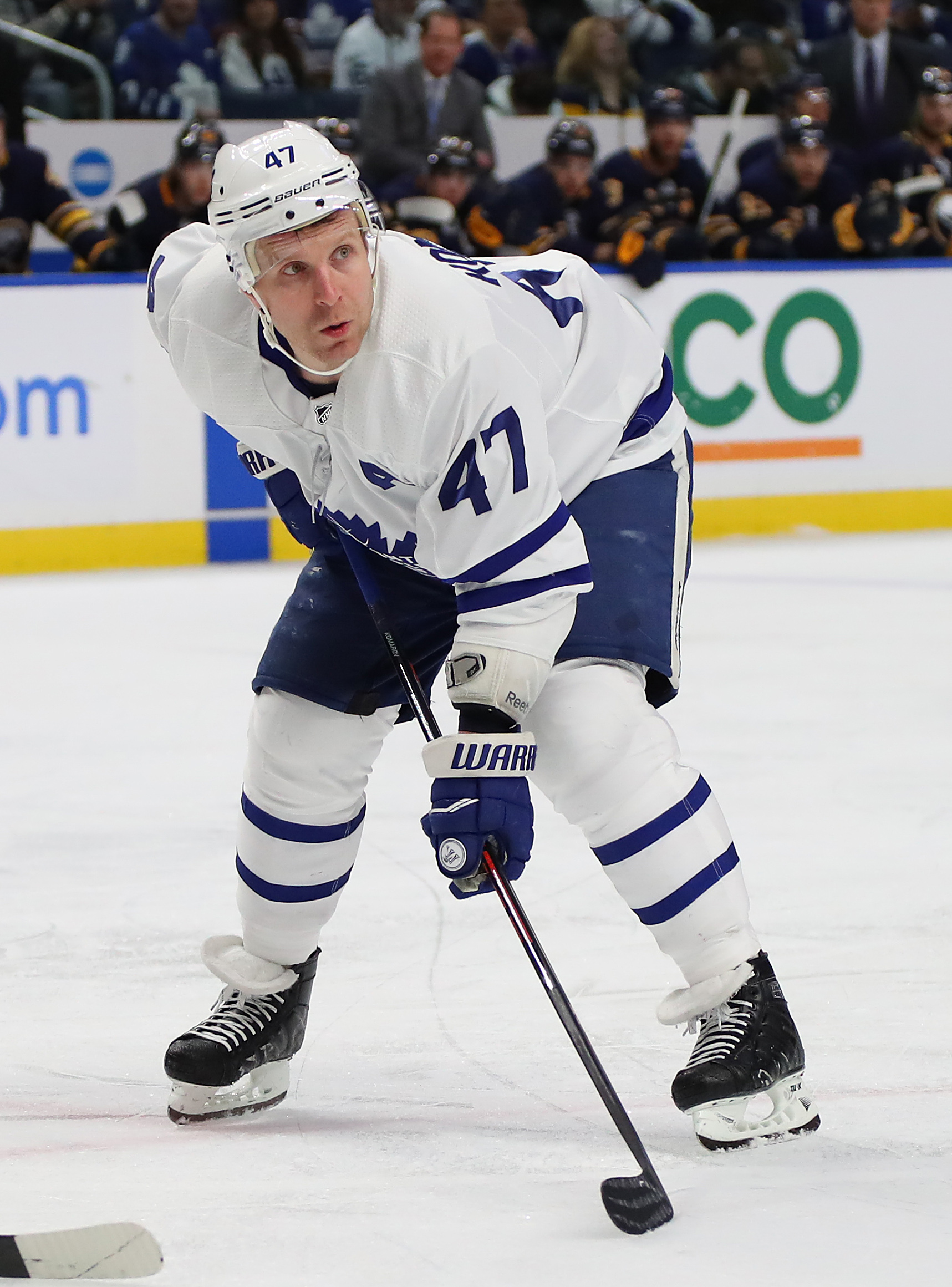 Mar 15, 2018; Buffalo, NY, USA; Toronto Maple Leafs center Leo Komarov (47) during the game against the Buffalo Sabres at KeyBank Center. Mandatory Credit: Kevin Hoffman-USA TODAY Sports / Kevin Hoffman