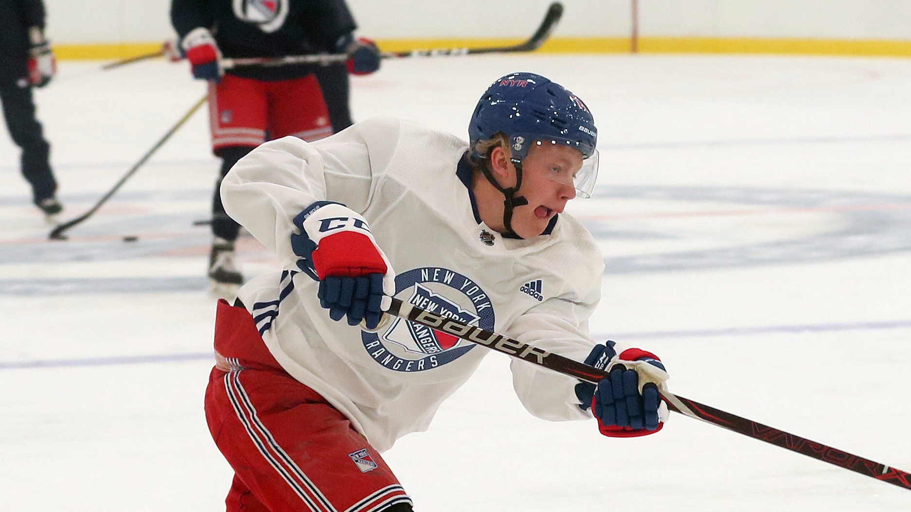 Rangers prospect Karl Henriksson and other Rangers prospects practice at the Rangers training facility in Greenburgh Sept. 5, 2019. Rangers Prospects Practice / Frank Becerra Jr./The Journal News, Rockland/Westchester Journal News via Imagn Content Services, LLC