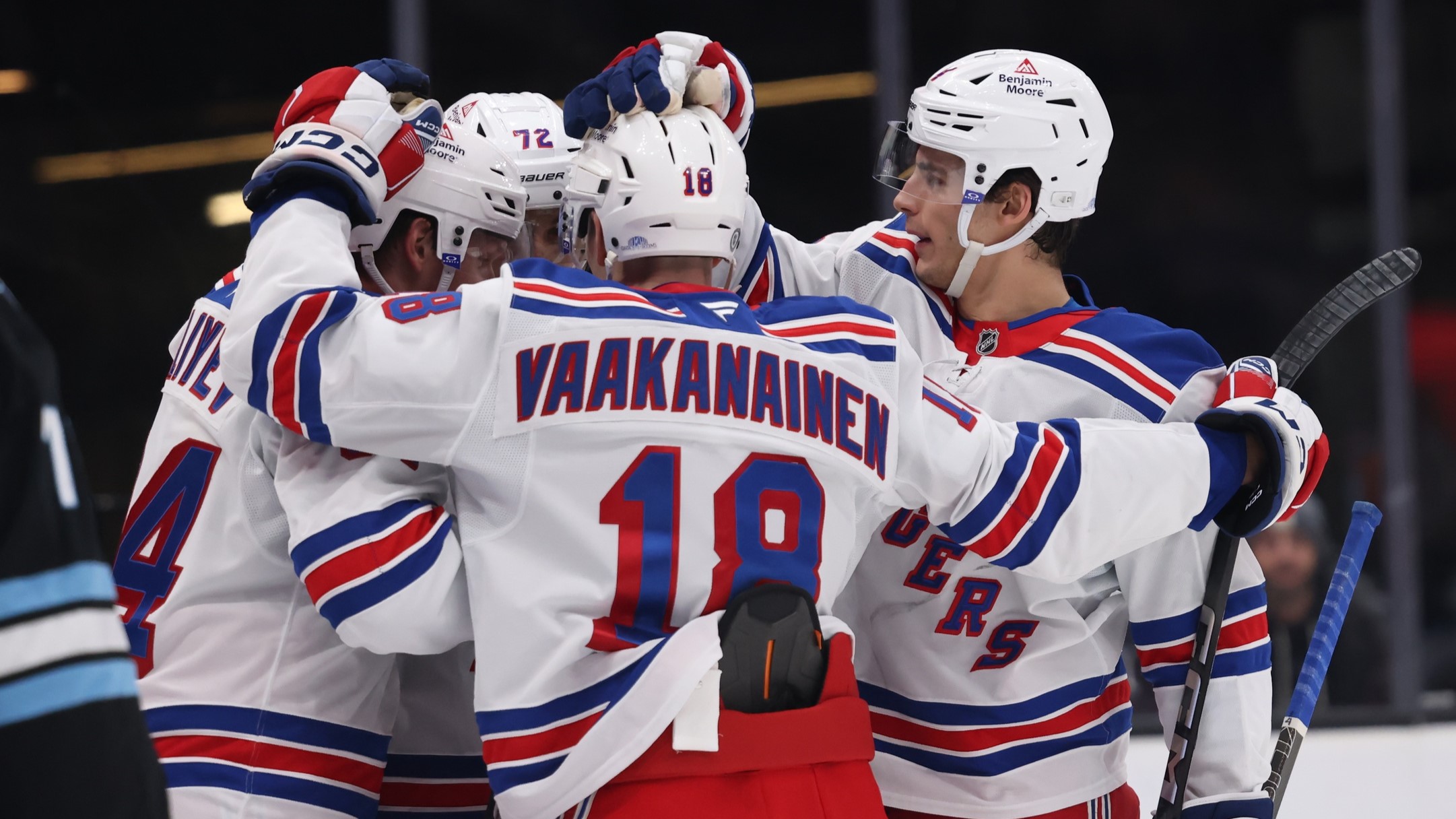Rangers extend point streak to six games with 5-3 win over UtahArthur Kaliyev scored first Rangers goal in win1/17/2025, 5:18 AMAssociated PressJan 16, 2025; Salt Lake City, Utah, USA; The New York Rangers celebrate a goal by New York Rangers right wing Arthur Kaliyev (34) against the Utah Hockey Club during the first period at Delta Center. / Rob Gray-Imagn Images