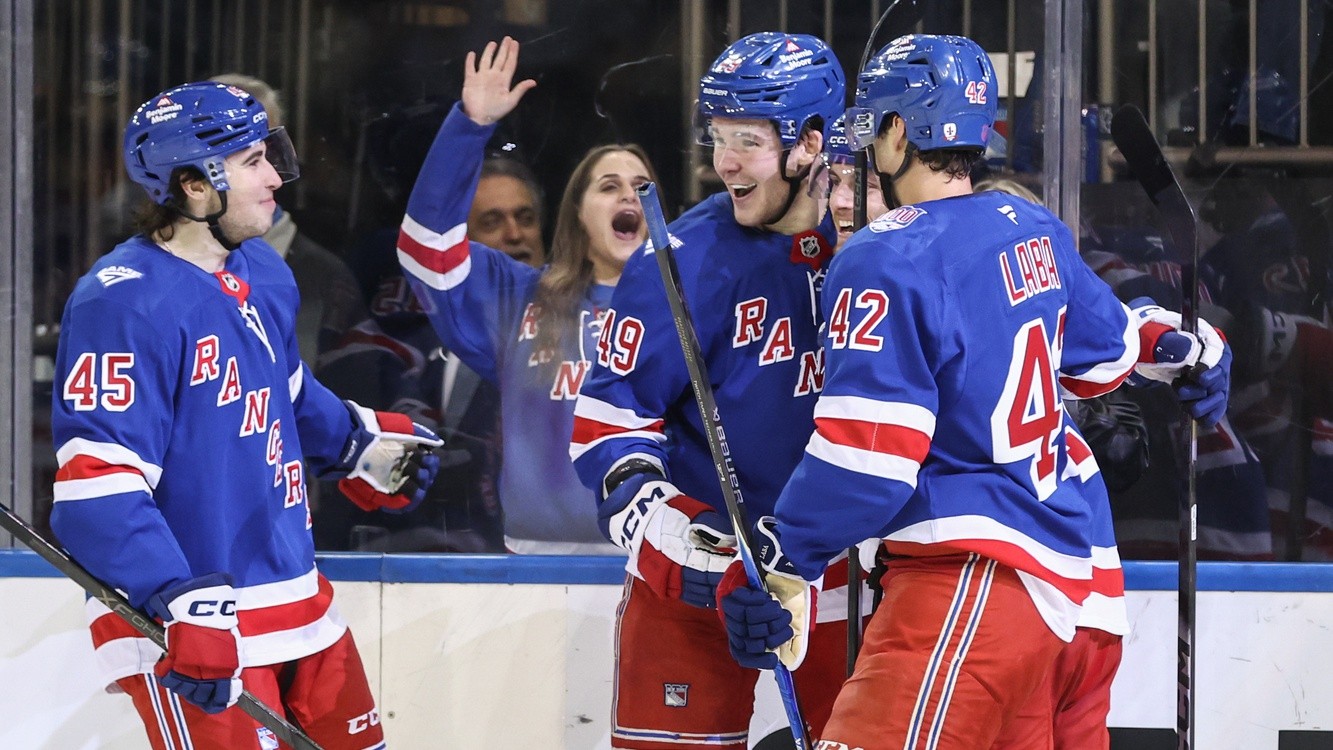 Rangers’ youngsters ‘hungry’ to stick after making most of late-season opportunityChmelar, Garand, and Sykora were three of the biggest standouts4/20/2026, 10:15 PMJohn FlaniganFreelance Editorial ProducerMar 31, 2026; New York, New York, USA; New York Rangers right wing Jaroslav Chmelar (49) celebrates with his teammates after scoring a goal in the second period against the New Jersey Devils at Madison Square Garden. / Wendell Cruz-Imagn Images