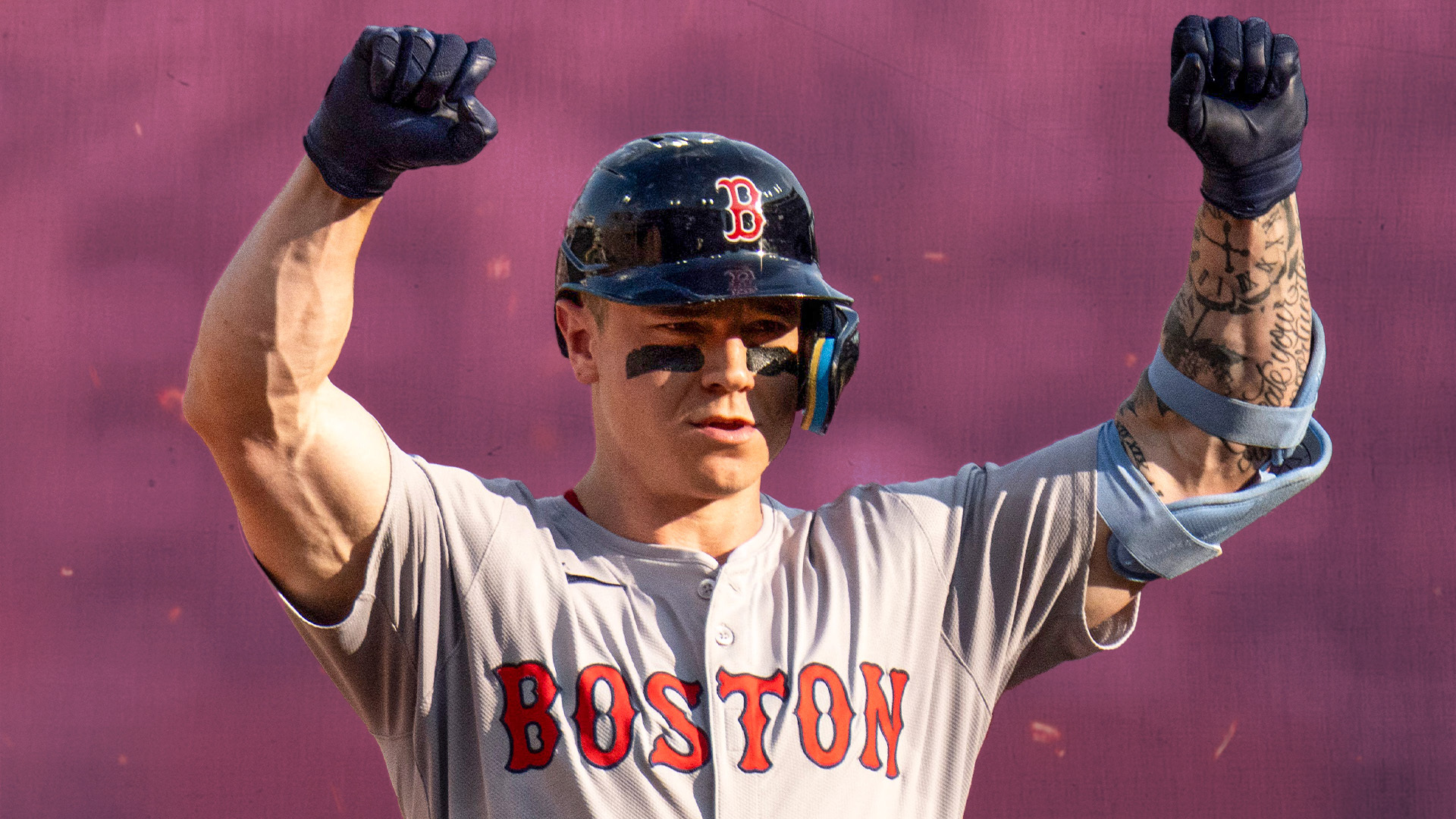 New York Mets left fielder Jesse Winker (3) reacts after hitting an RBI triple during the fourth inning against the Los Angeles Dodgers during game five of the NLCS for the 2024 MLB playoffs at Citi Field / Vincent Carchietta - Imagn Images
