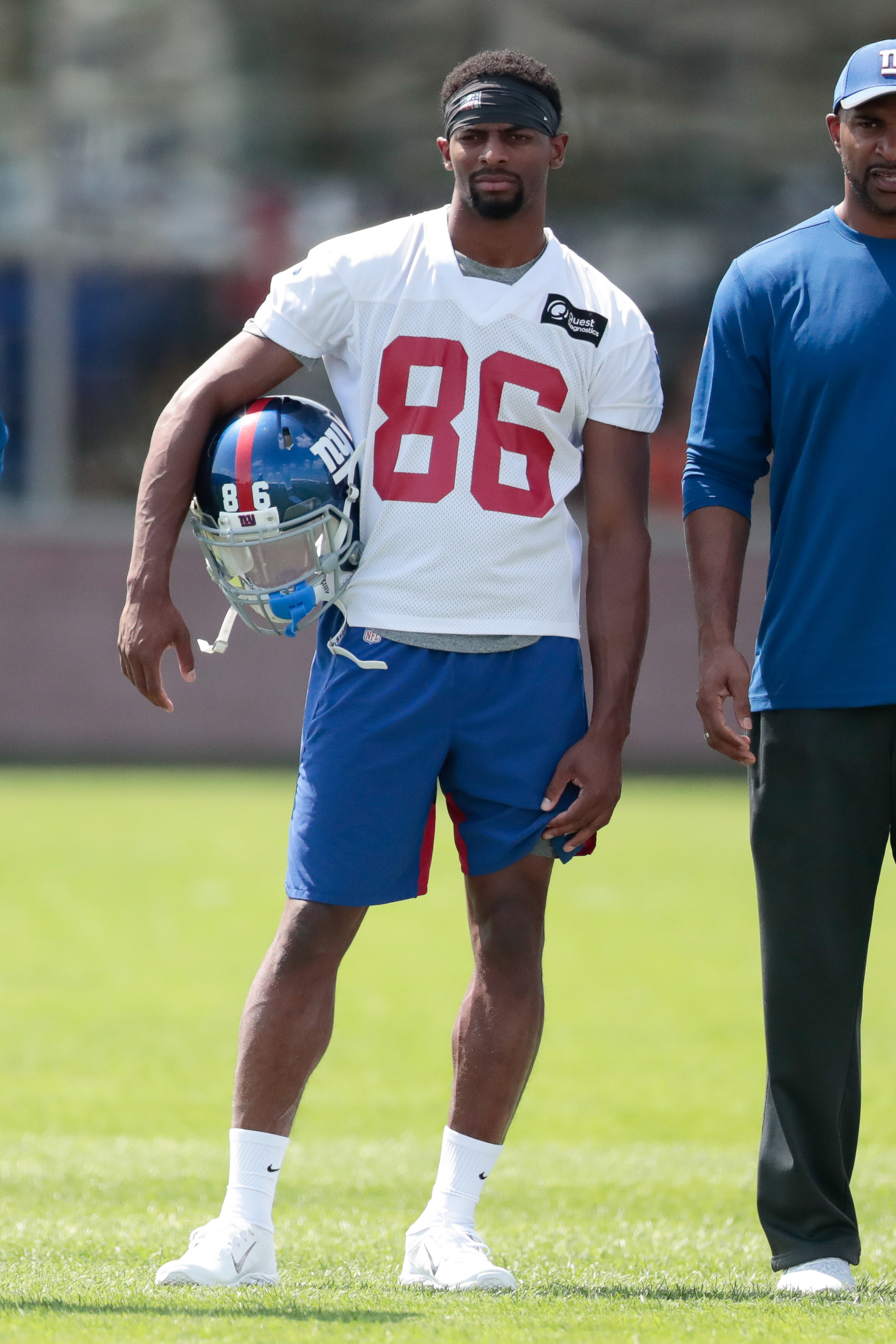 Jul 25, 2019; East Rutherford, NJ, USA; New York Giants wide receiver Darius Slayton (86) looks on during the first day of training camp at Quest Diagnostics Training Center. Mandatory Credit: Vincent Carchietta-USA TODAY Sports / Vincent Carchietta