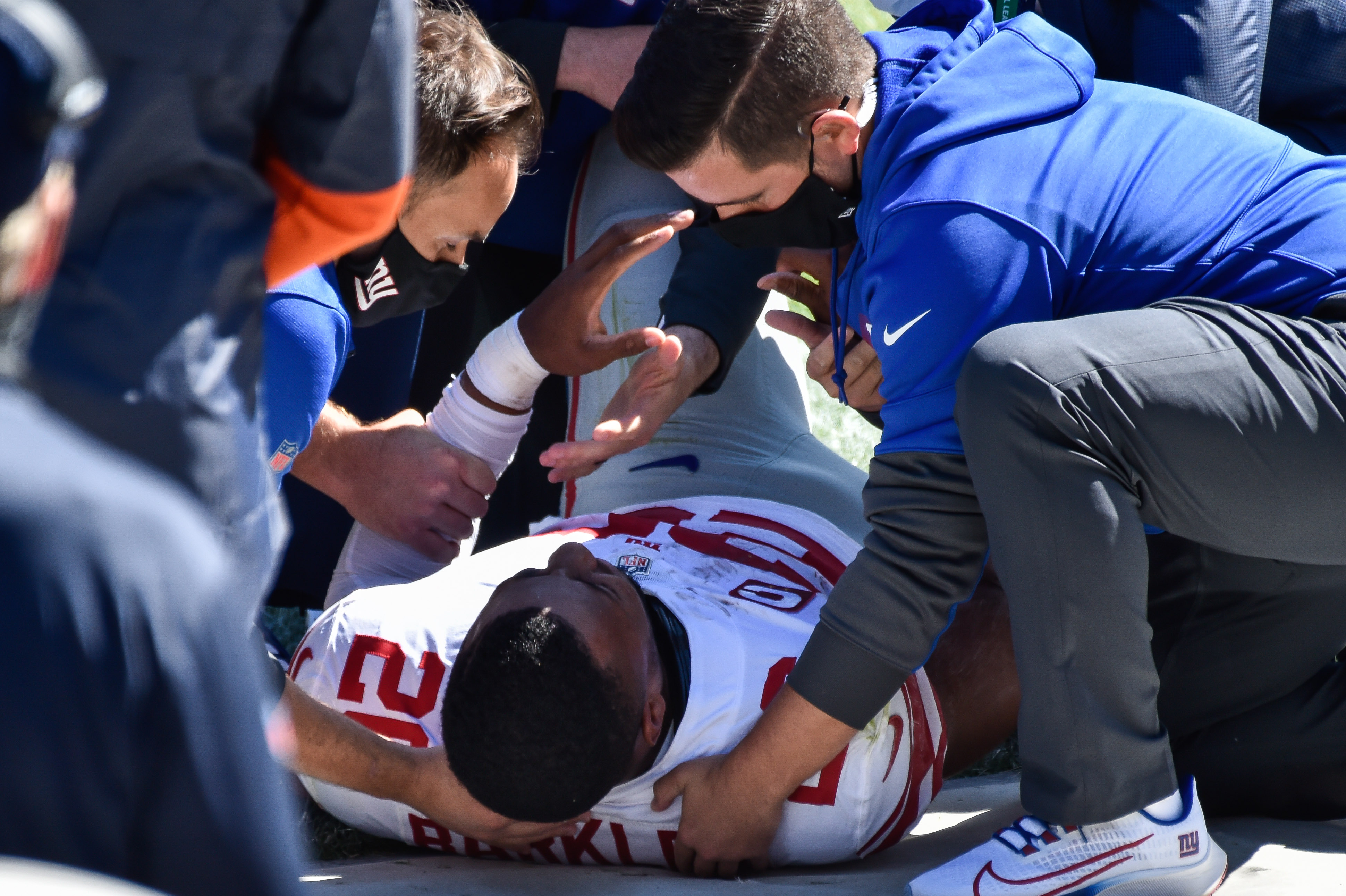 Saquon Barkley's suspected torn ACL affects much more than just the Giants' 2020 seasonWhat this could mean for Dave Gettleman and Barkley's long-term deal is up in the air now9/20/2020, 10:35 PMRalph VacchianoNFL InsiderGiants RB Saquon Barkley needs help off the field after suffering injury / USA TODAY